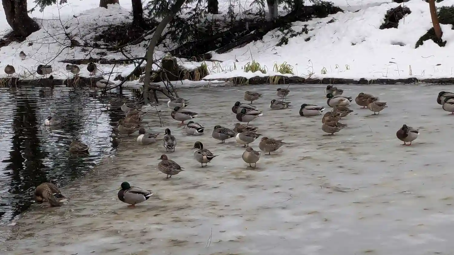 凍った池の上にもいました