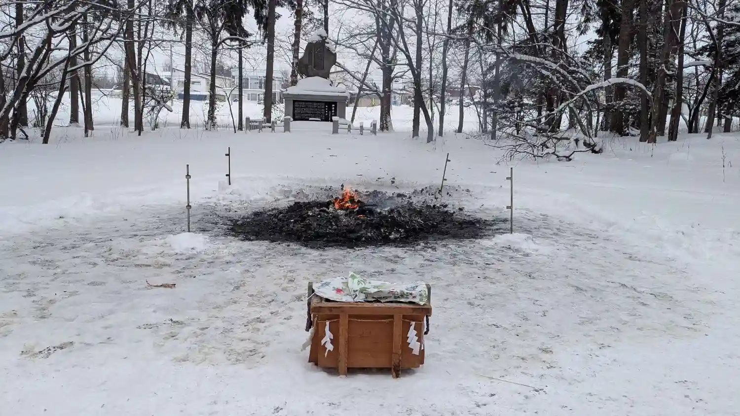 | ご由緒 | 明治25年神楽村発足、26年民間に貸与せられ(宮内省帝室林野局に属す)逐次入植者が増加、30年入植者の提唱により村の氏神を祀る事となり西神楽居住の田村熊太郎手製2尺4分の宮型高さ8寸4分巾2寸7分の桂板に3神を書き伐採切株に奉斎、明治37年神社地4町5反余を無料貸与、34年13坪程度の神殿を建立、大正元年8月、27坪の2度目の本殿拝殿竣工、大正7年8月創立許可村社に列す。大正15年接続地購入9町7反余となる(戦後開放)。昭和2年社殿の屋根を葺替し、同5年には渡殿拝殿基礎を改修、21年宗教法人設立、29年3月知事認証、41年七十周年記念神輿奉製神輿殿造成、45年大鳥居復元、54年9月新社殿造営完成、55年10月新社務所竣工、57年神社史出版、61年90周年記念玉垣鳥居授与所(神輿殿共)、手水舎完成。平成8年百周年記念事業参道改修外を実施。平成4年7月宅地1800坪を寄附採納。 |