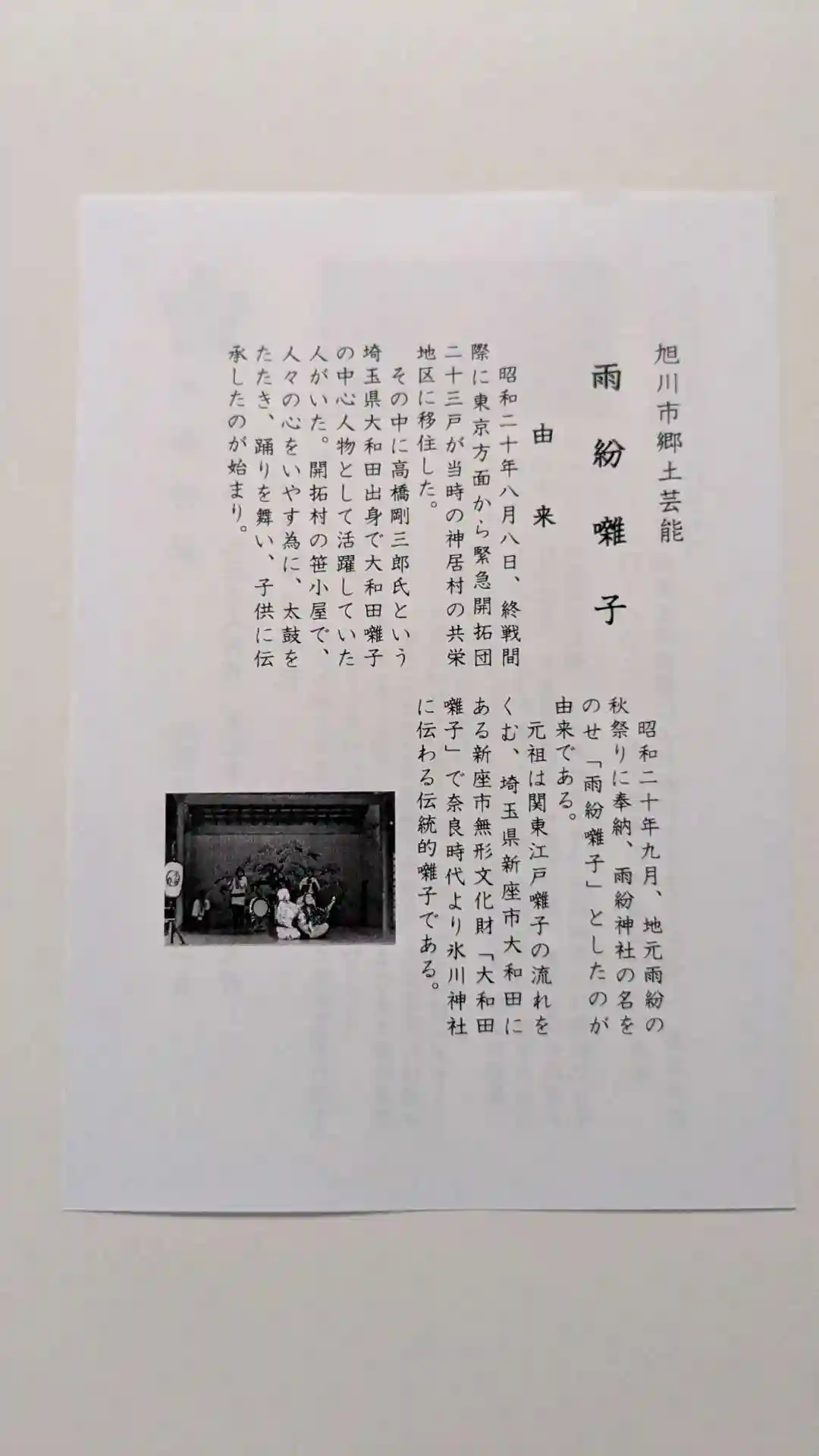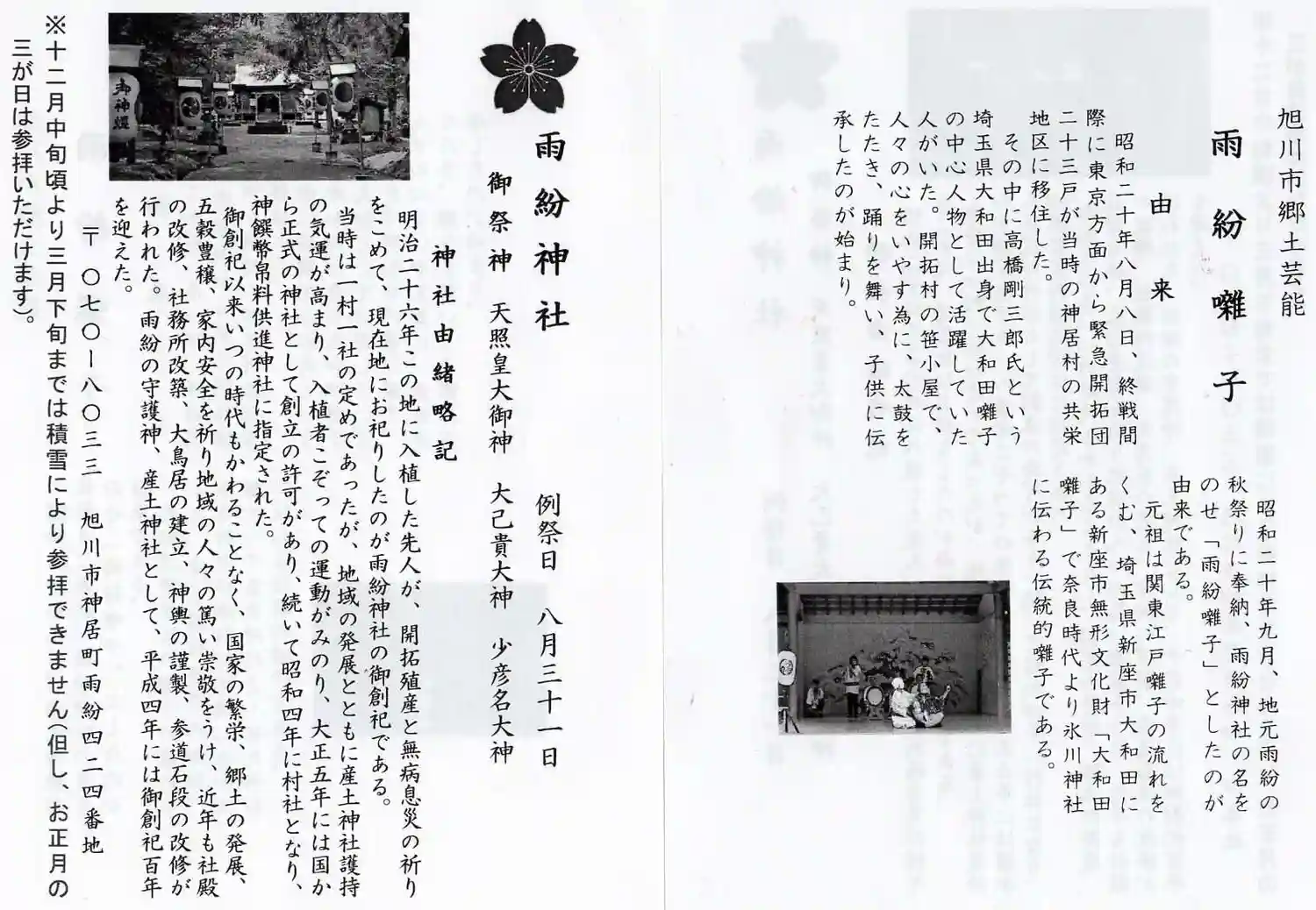 | 文化財 | 雨紛囃子(旭川市郷土芸能) |