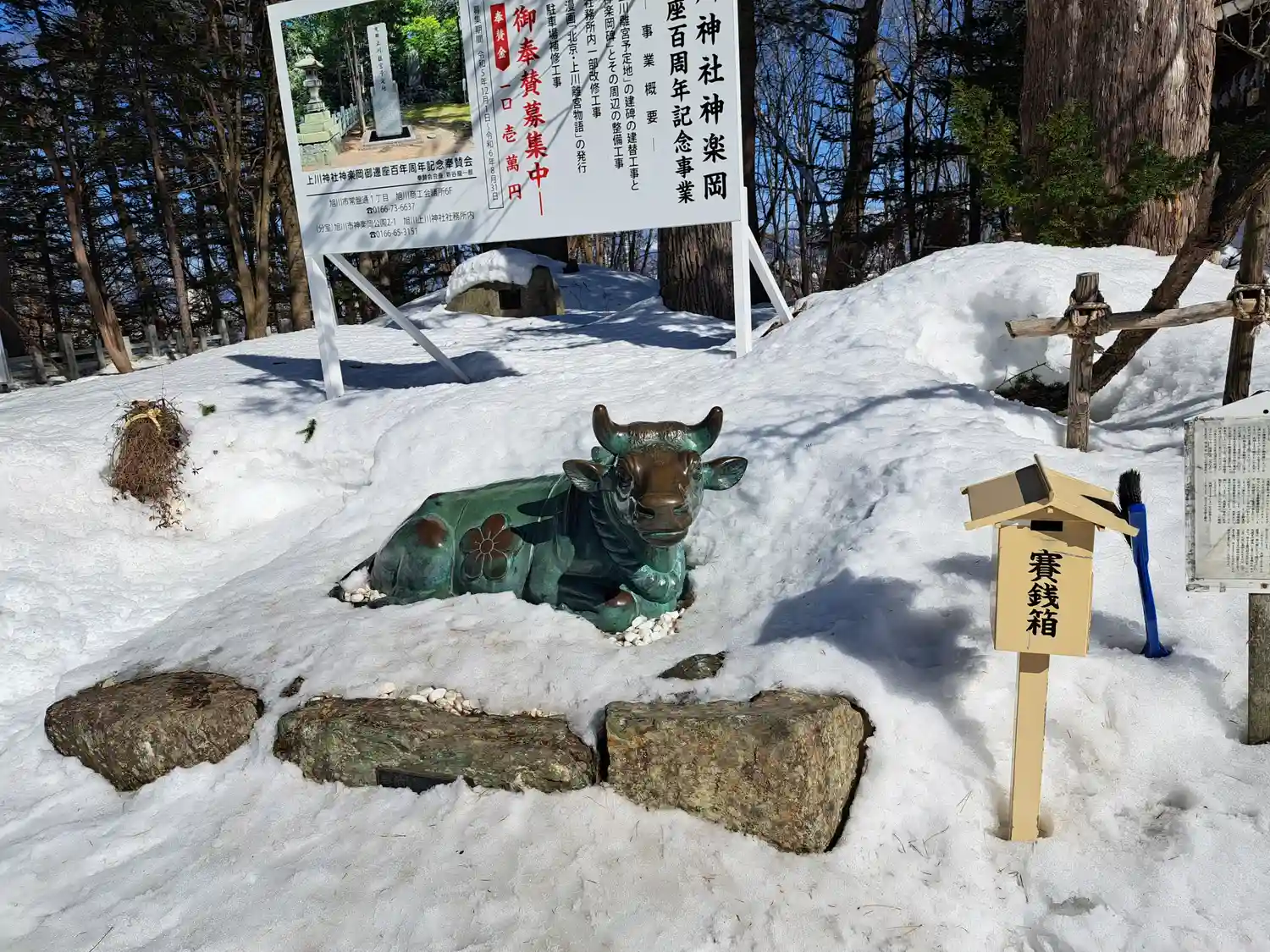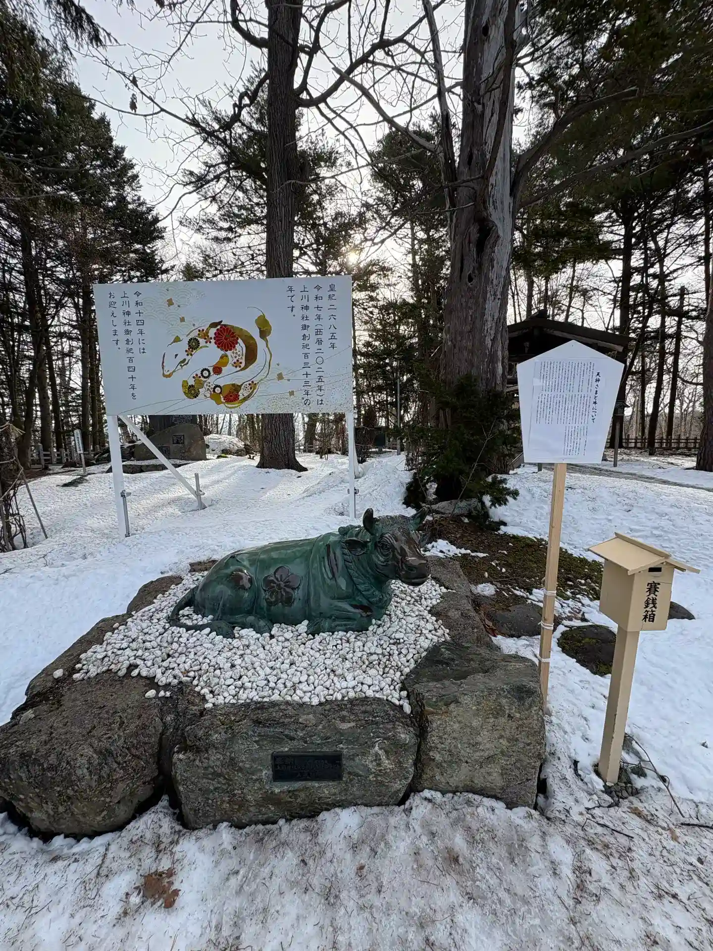 上川神社の境内にあります。菅原道真公と言えば牛。牛も鳥居の横にいます🐮