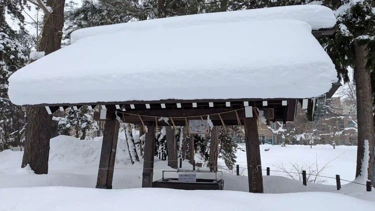 雪が積もった手水舎