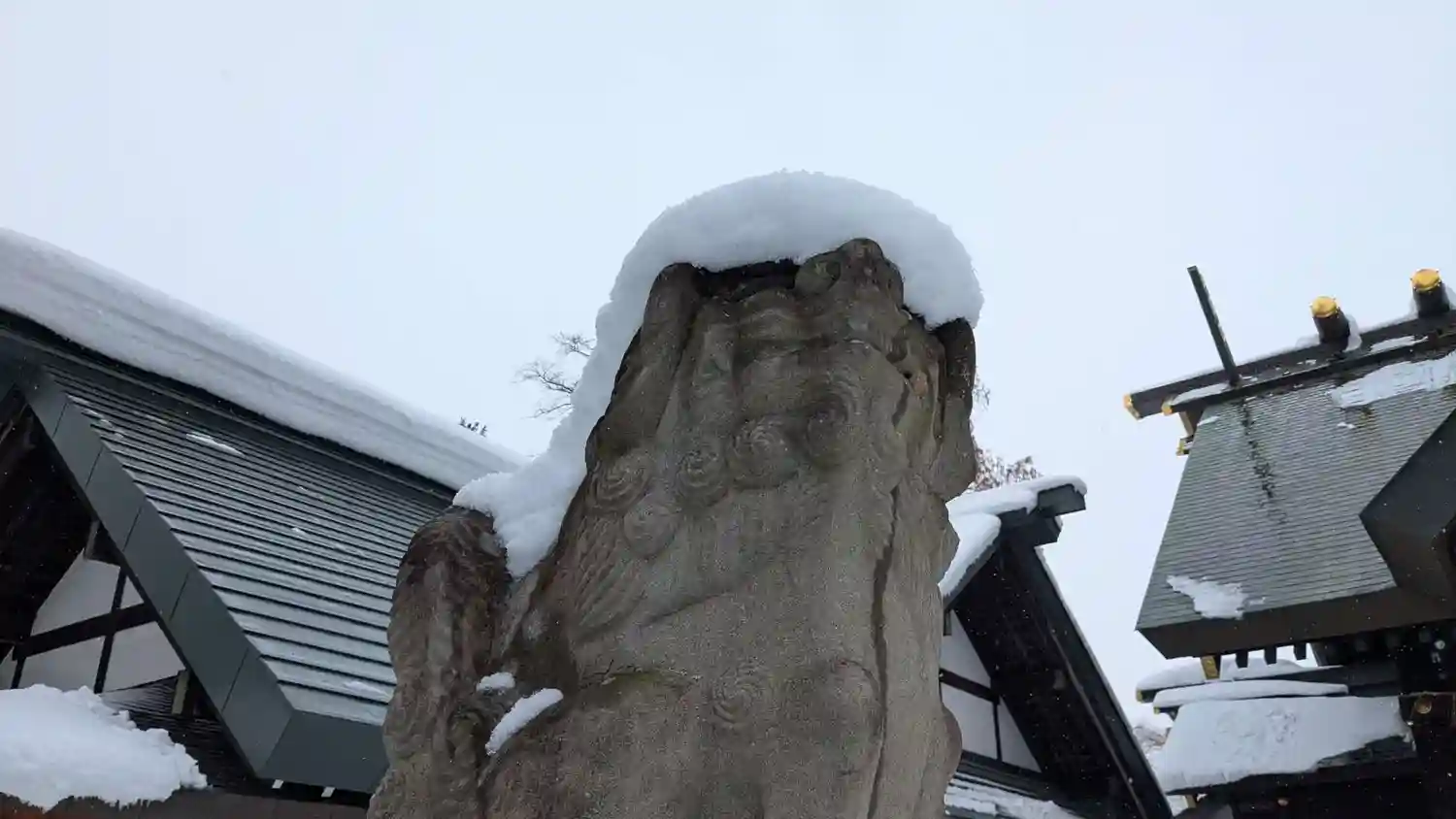 狛犬の頭にも雪