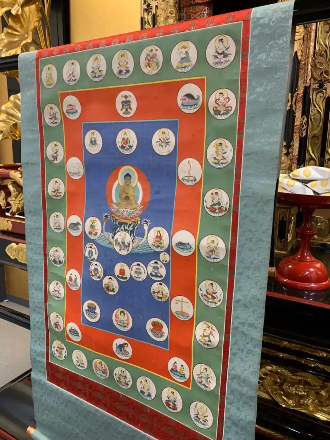 「星供壇」の前にお祀りしている「星供曼荼羅(ほしくまんだら)」に向かって、皆さまの福寿増長・厄難消除・息災延命を祈願致します。