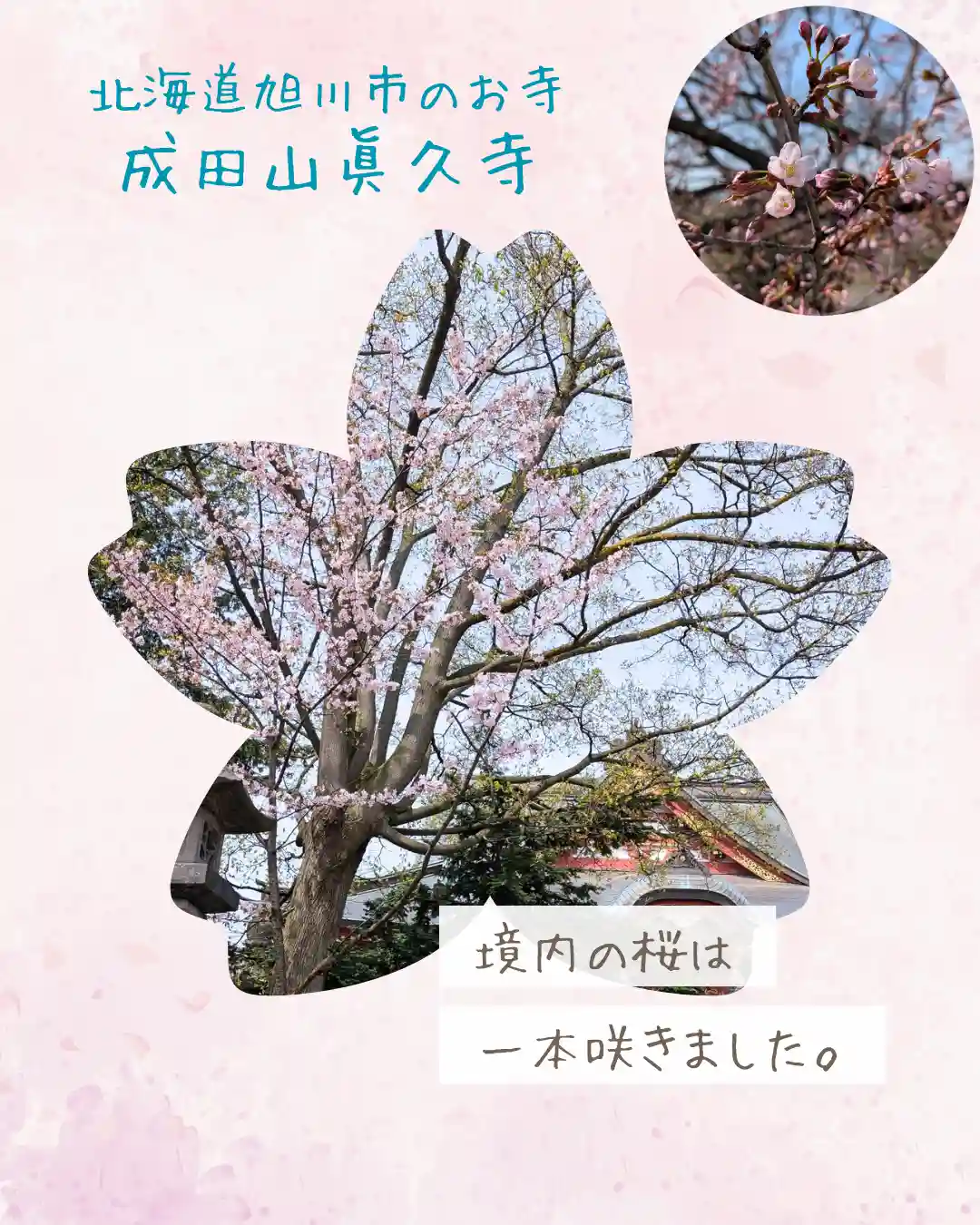 眞久寺の桜は本堂近くの一本が満開でした。