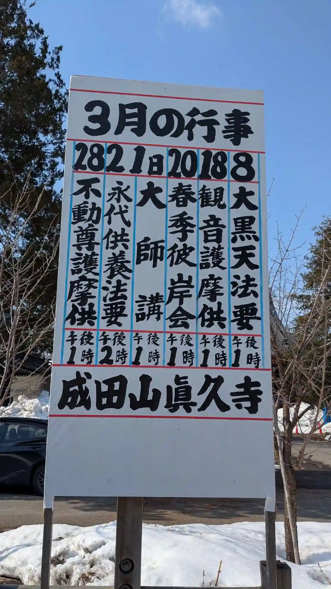 そして午後は旭川に行き、成田山眞久寺で賀正の鐘を撞き、修正会大護摩供法要…
