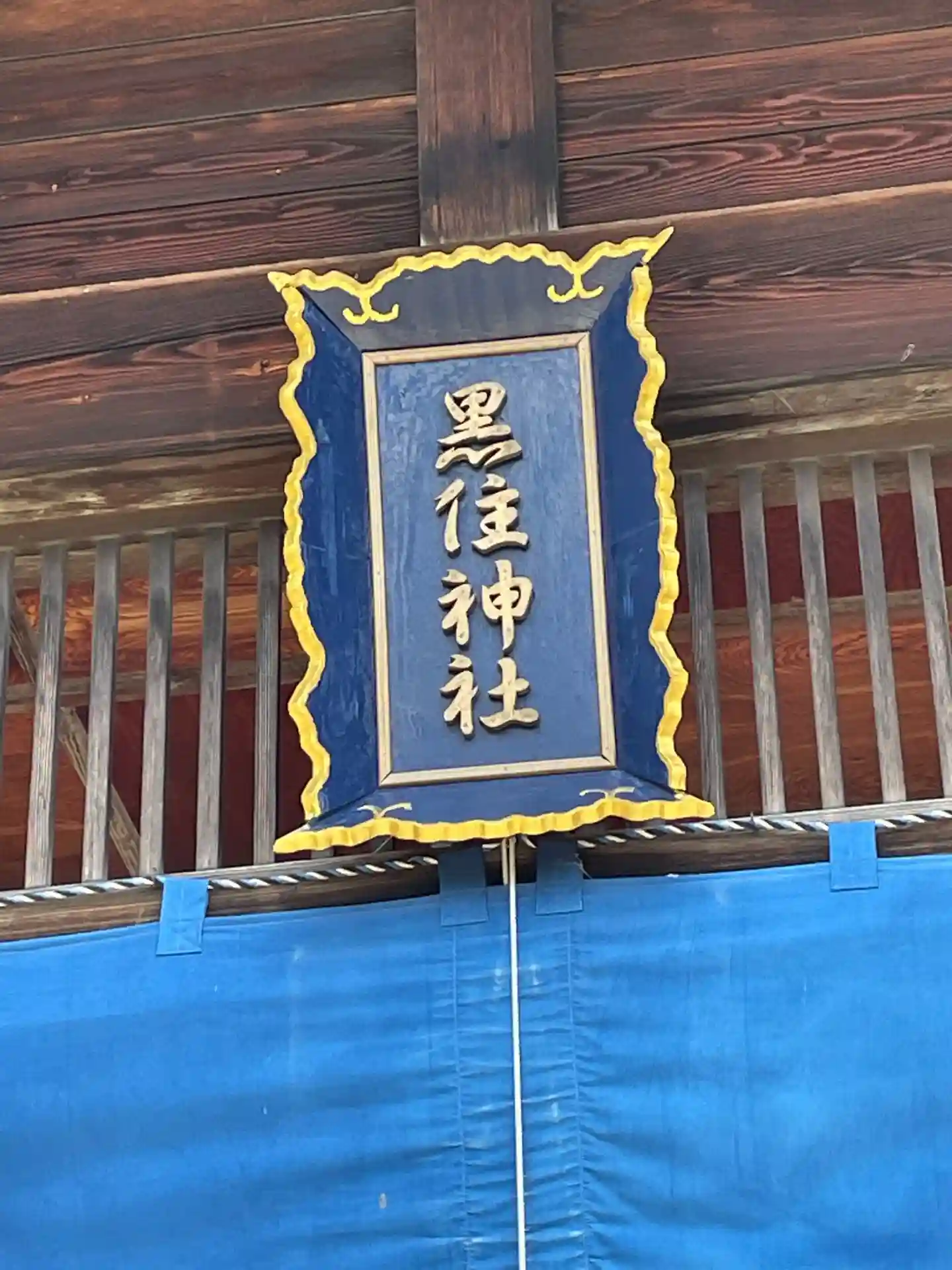 拝殿の青幕と、神社銘板も青色で😍素晴らしい🙆