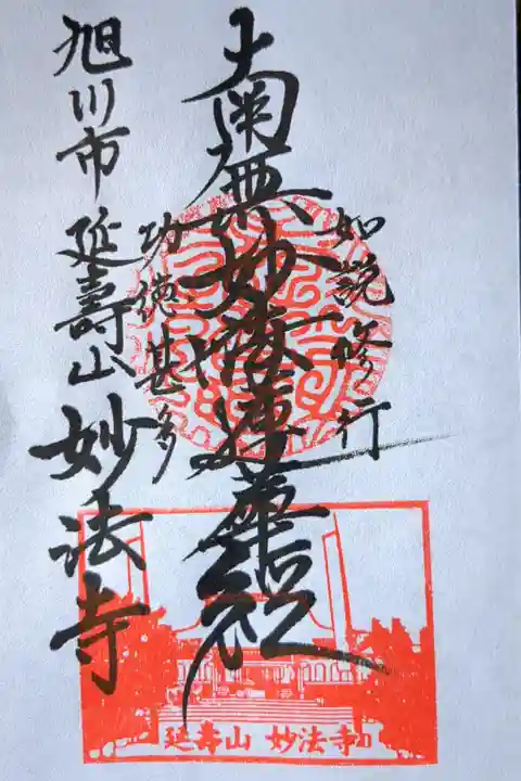大雪通にある日蓮宗の延壽山妙法寺。旭川市で初の法華道場だそうです。大きな日蓮聖人の像と宝塔が目印です。