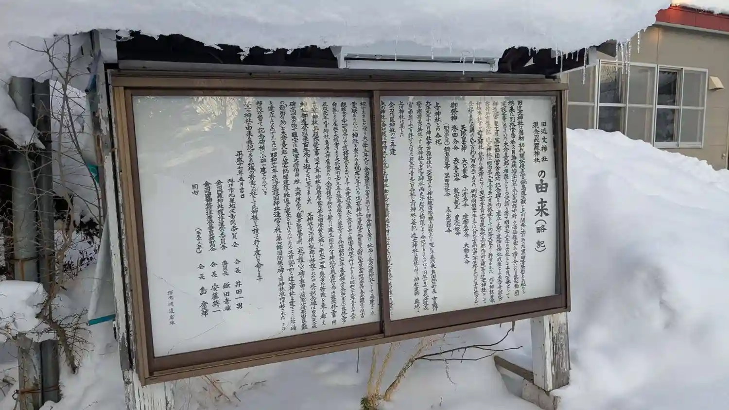 昨年の地元誌に、町内会での維持管理が難しくなったため上川神社にお返しして隣の会館を解体するという決定がなされて町内会が紛糾しているという記事を見かけたのでどうなっているかと思いましたが、神社も会館も残っていました。