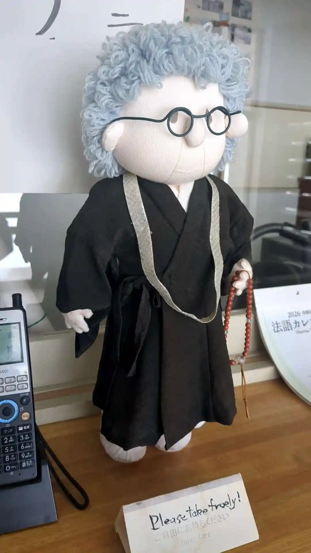 寺務所の玄関ではぬいぐるみがお出迎え。