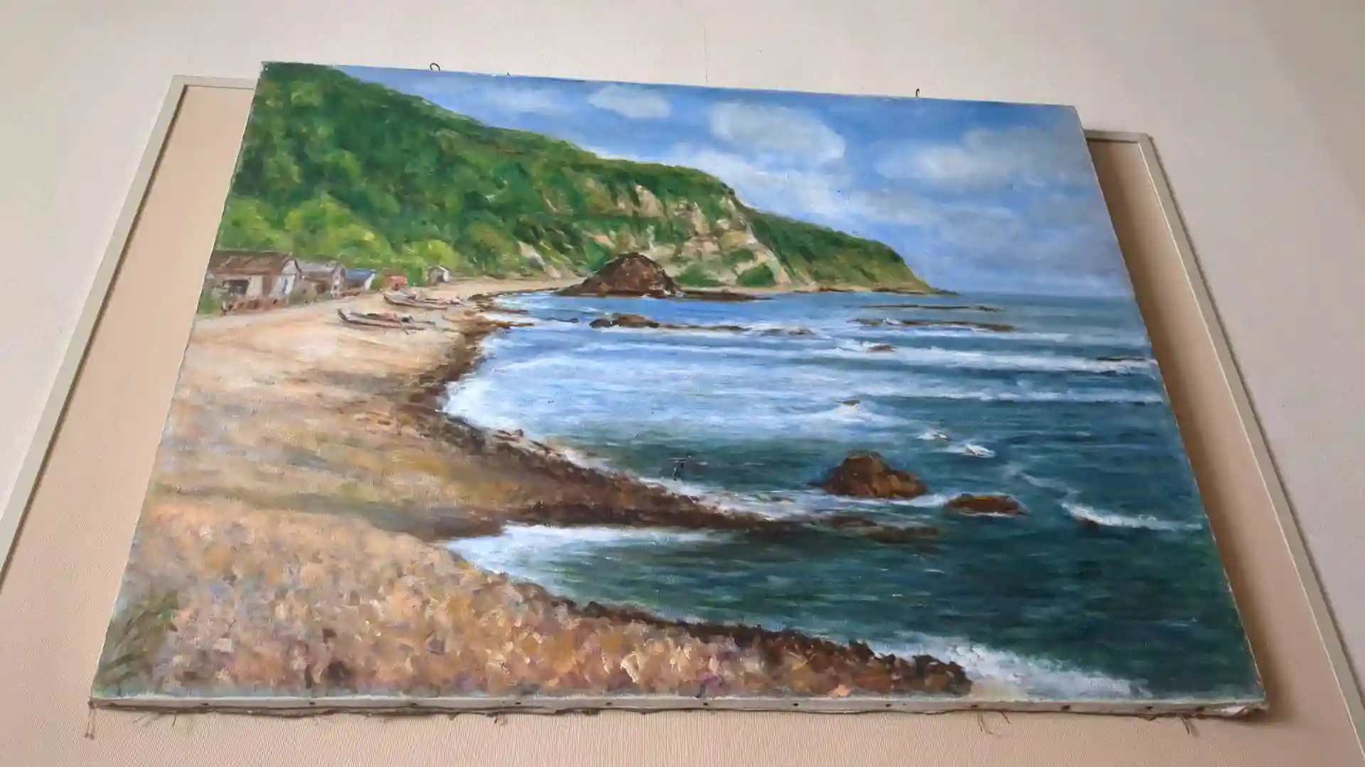 2階本堂に続く階段の壁には絵画がいくつも飾られていました。