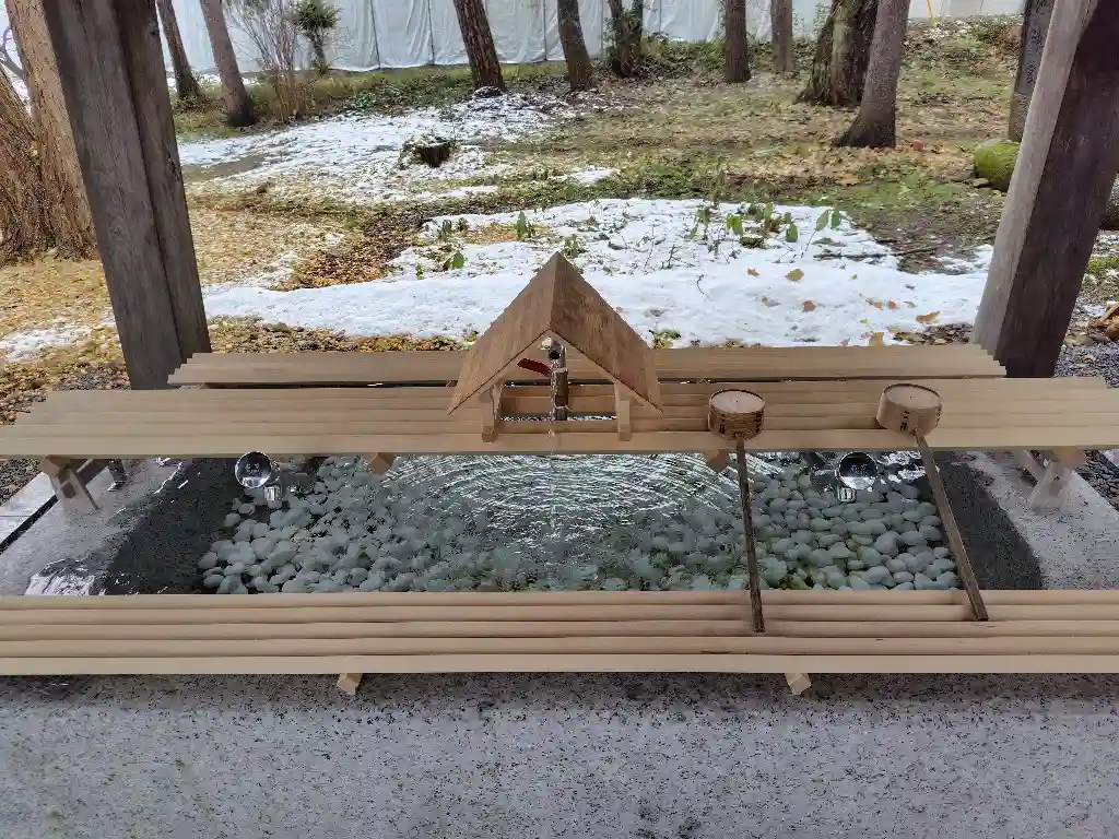 北海道の神社の手水舎は、この時期には水道凍結のため止められていますが、東川神社の手水は使われています。