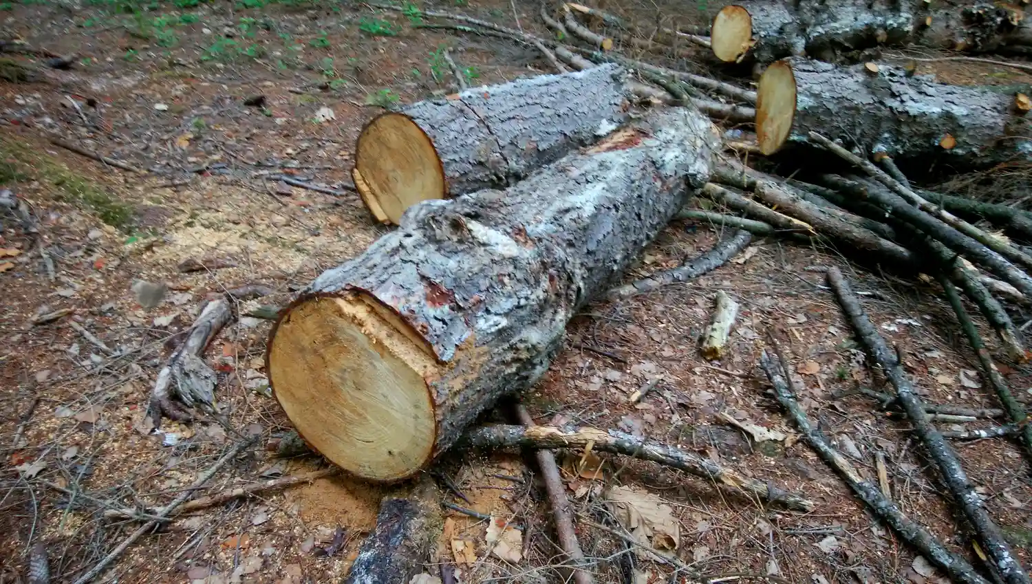 伐採された木々