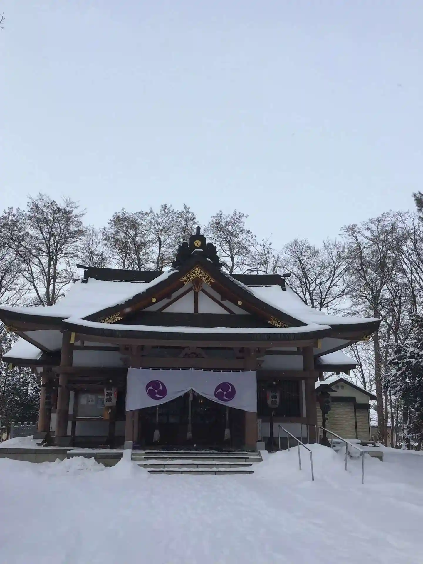 旭川近郊の神社巡りで参拝しました。車で社殿まで行けますが、参道の階段から上ると息が切れそうです。