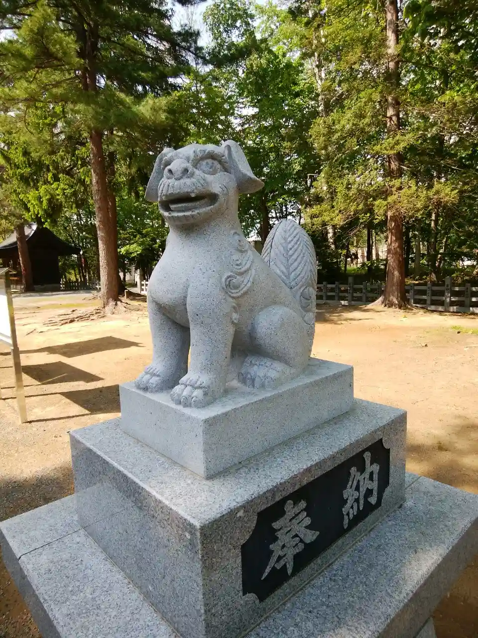 とても広い境内でとても姿勢の良い狛犬が