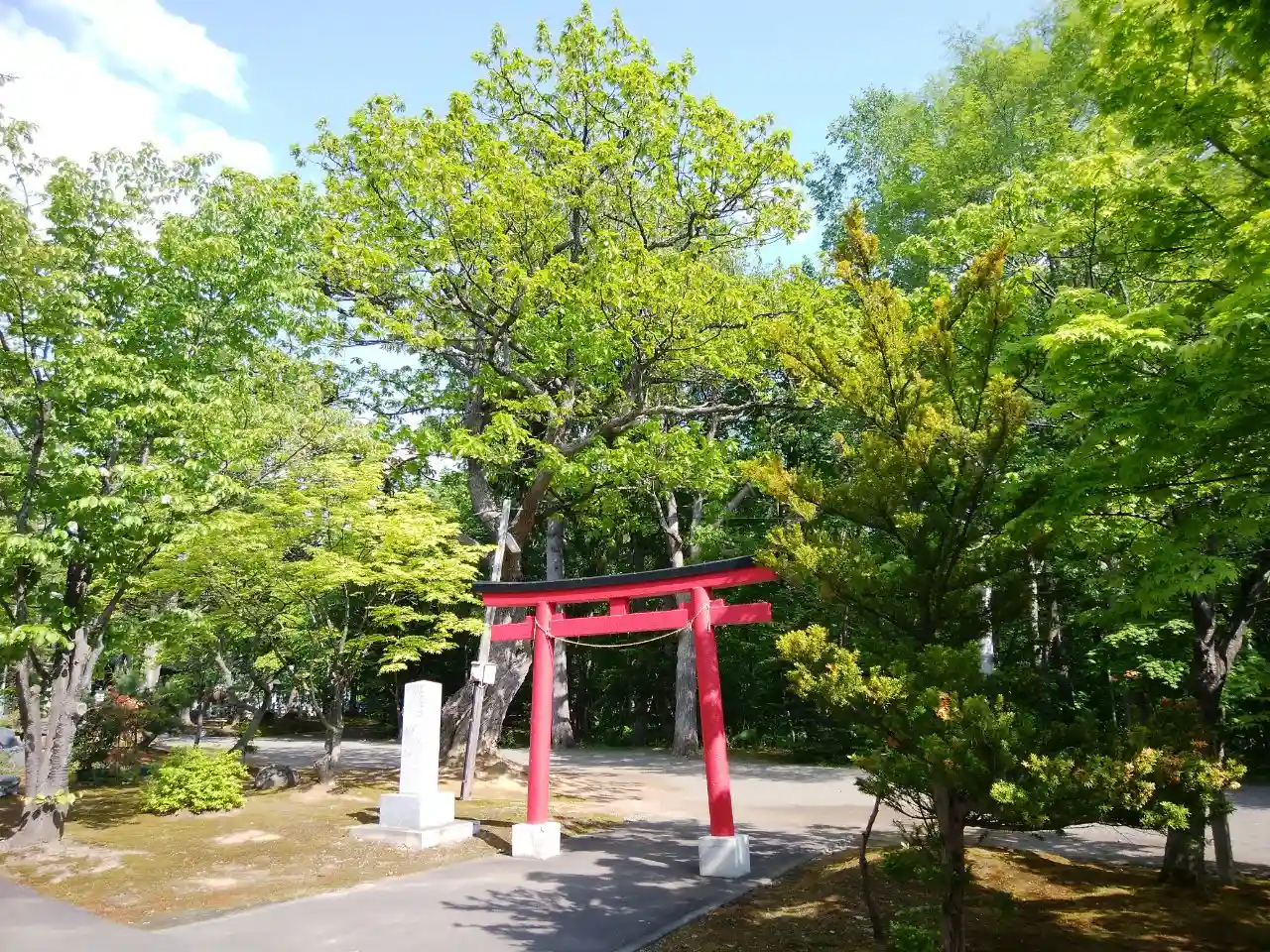 境内社の紅鳥居も緑の中で素敵♪