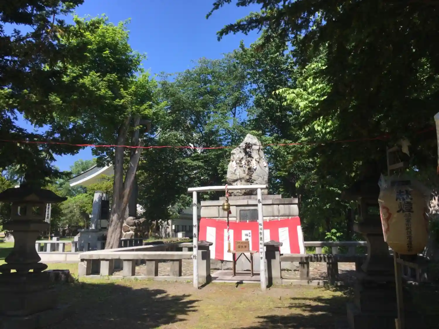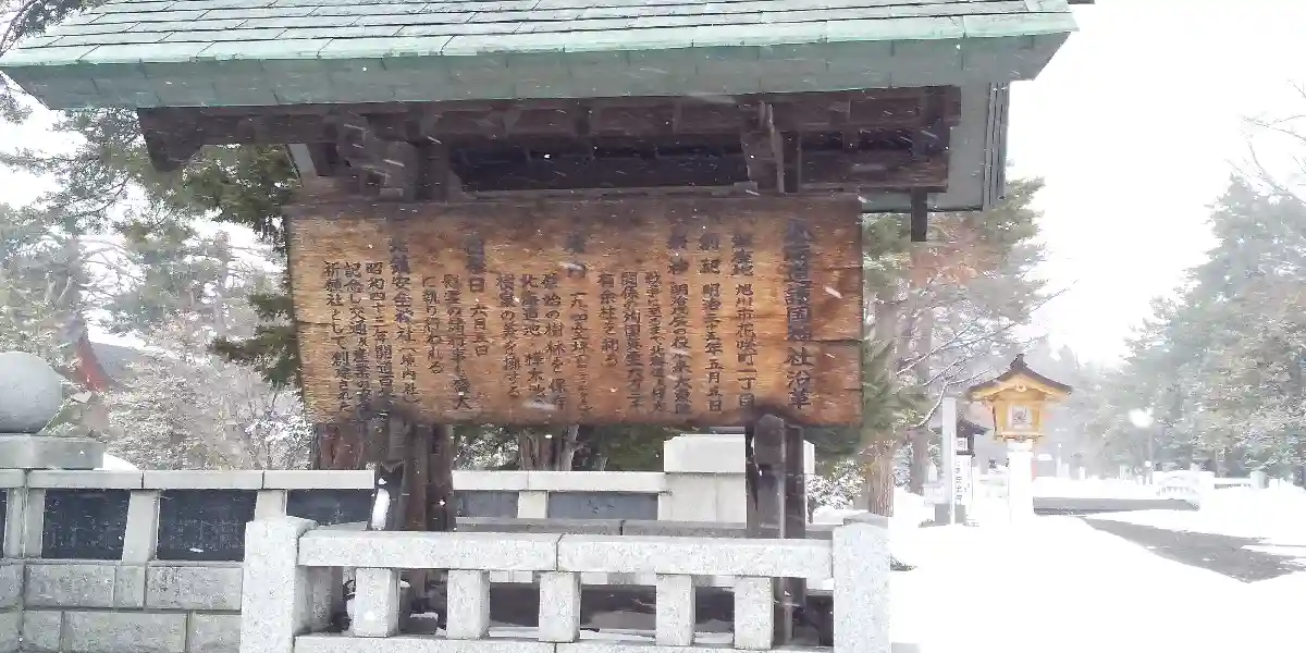 | ご由緒 | 本神社は遠く明治35年5月5日時恰も日露の風雲急なる最中に旧第七師団長大迫尚敏氏主祭の下に練兵場に小祠を設け北海道に於ける国事殉難者並開拓に殉じた屯田兵の招魂祭典を挙行したのに始まる。