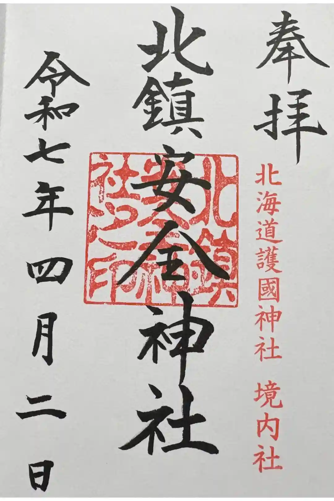 (北海道護国神社の御朱印帳にお書き入れされている通常御朱印)