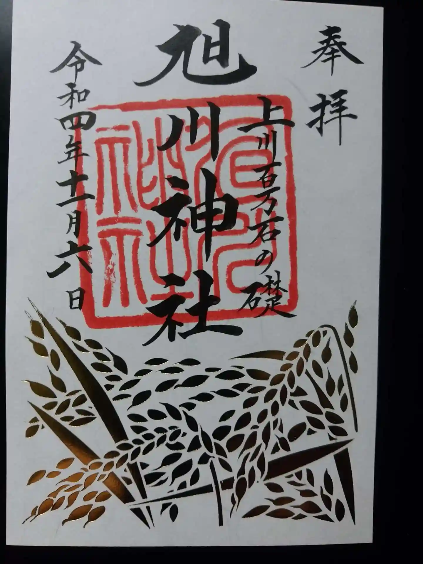 雪が降る前に旭川の神社を参拝し、特別な御朱印を頂いてきました。