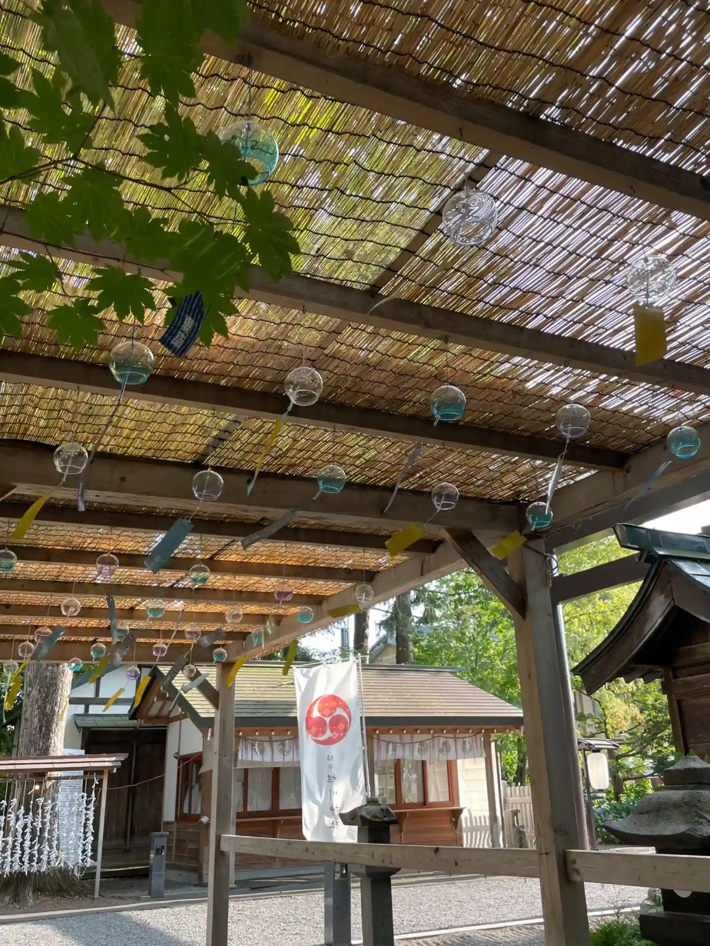 さて、携帯も少し充電されたので、写真を撮りに再び鳥居をくぐります。風鈴棚に誘われました。