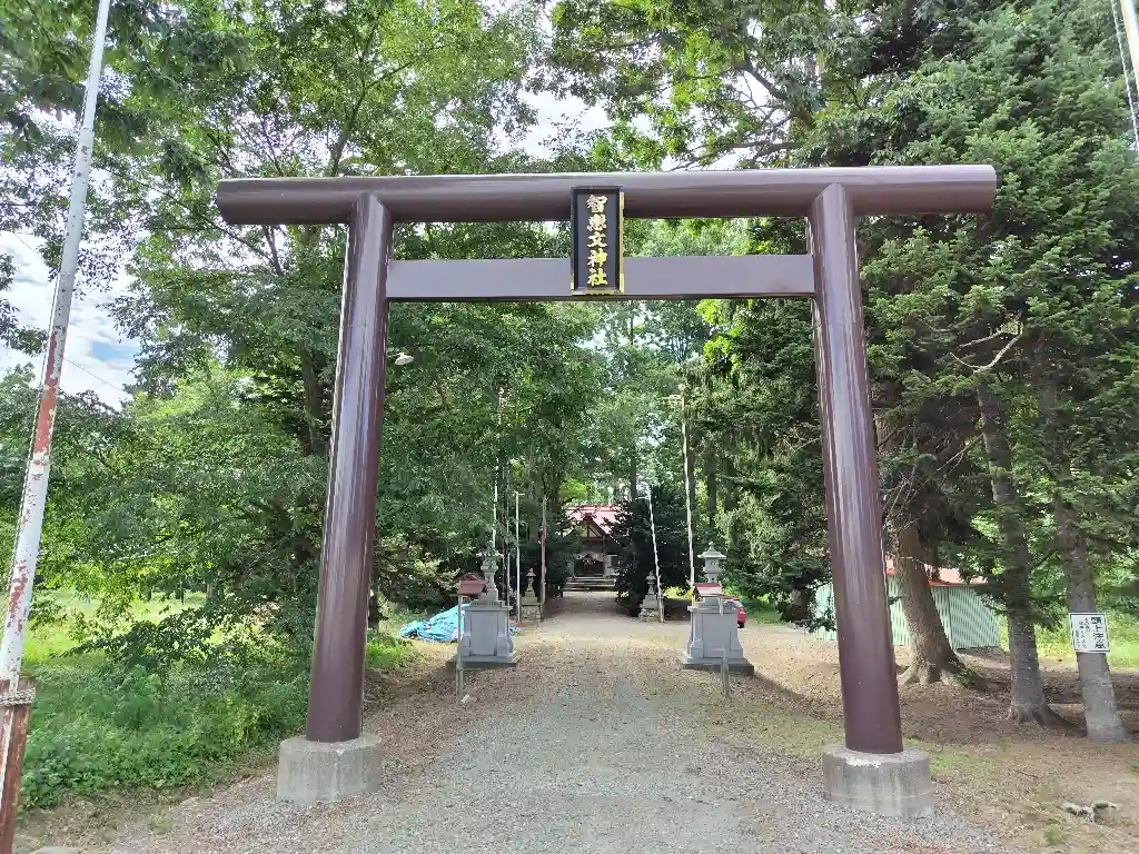 国道40号を走り、そこからJR智恵文駅方面に向かう道道美深名寄線に入るとまもなく智恵文神社の鳥居が見えてきます。