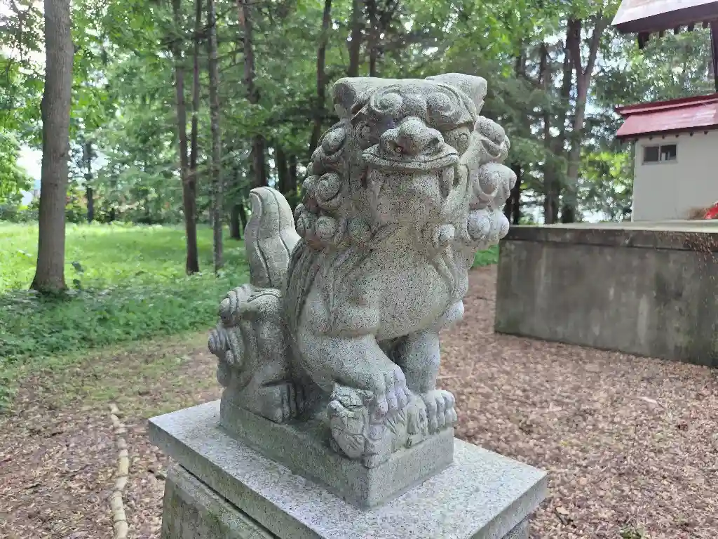 拝殿の手前には一組の狛犬がありますが、台座の大きさと比して少し小さく感じる狛犬です。