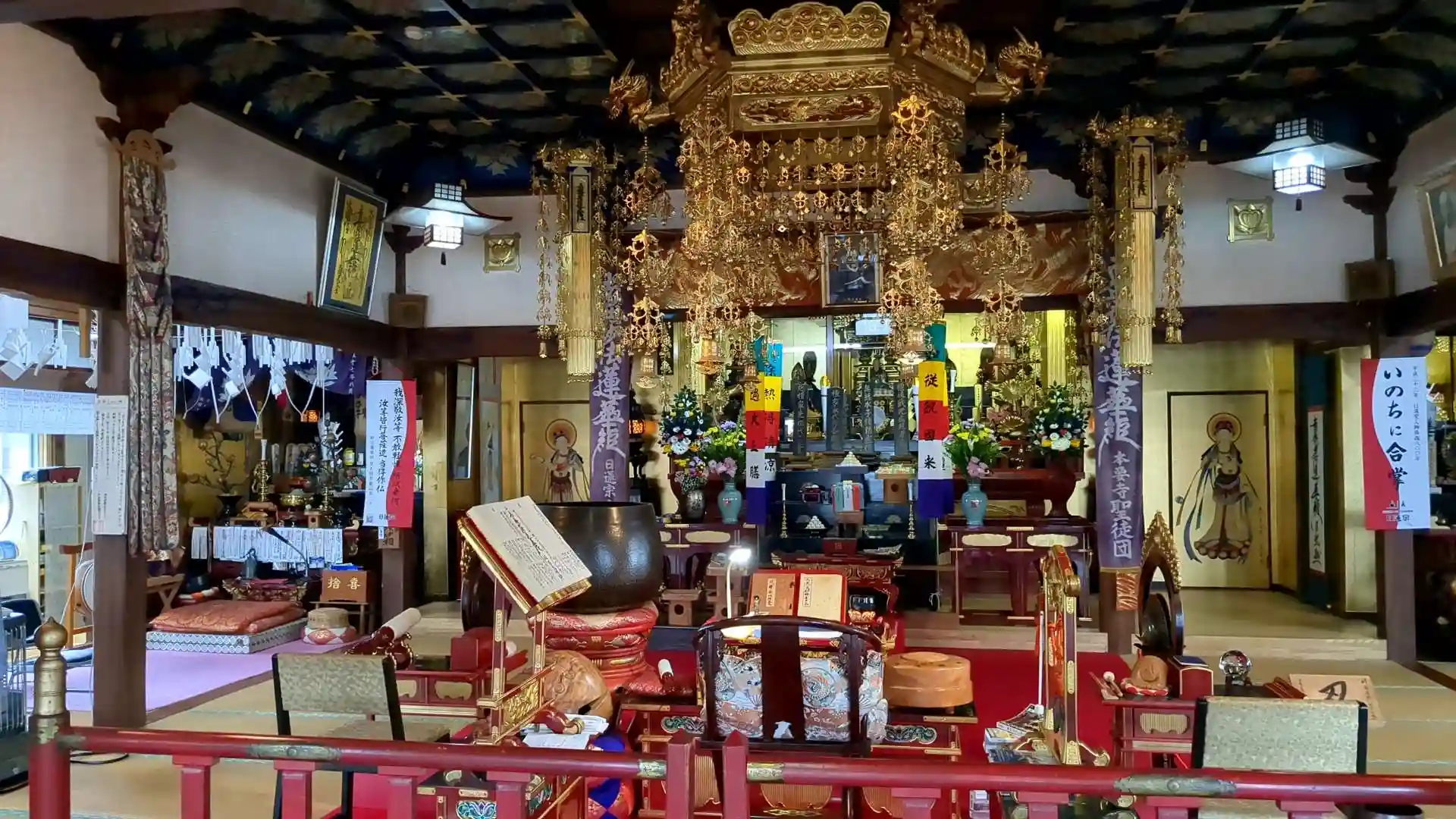 本堂内は非常に立派な造りで壁にお寺の由緒書が飾られていました。