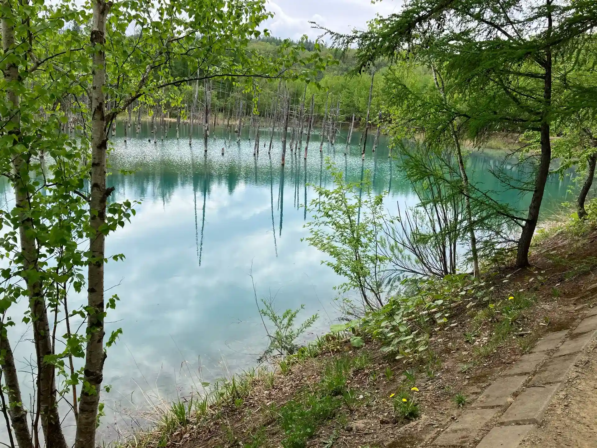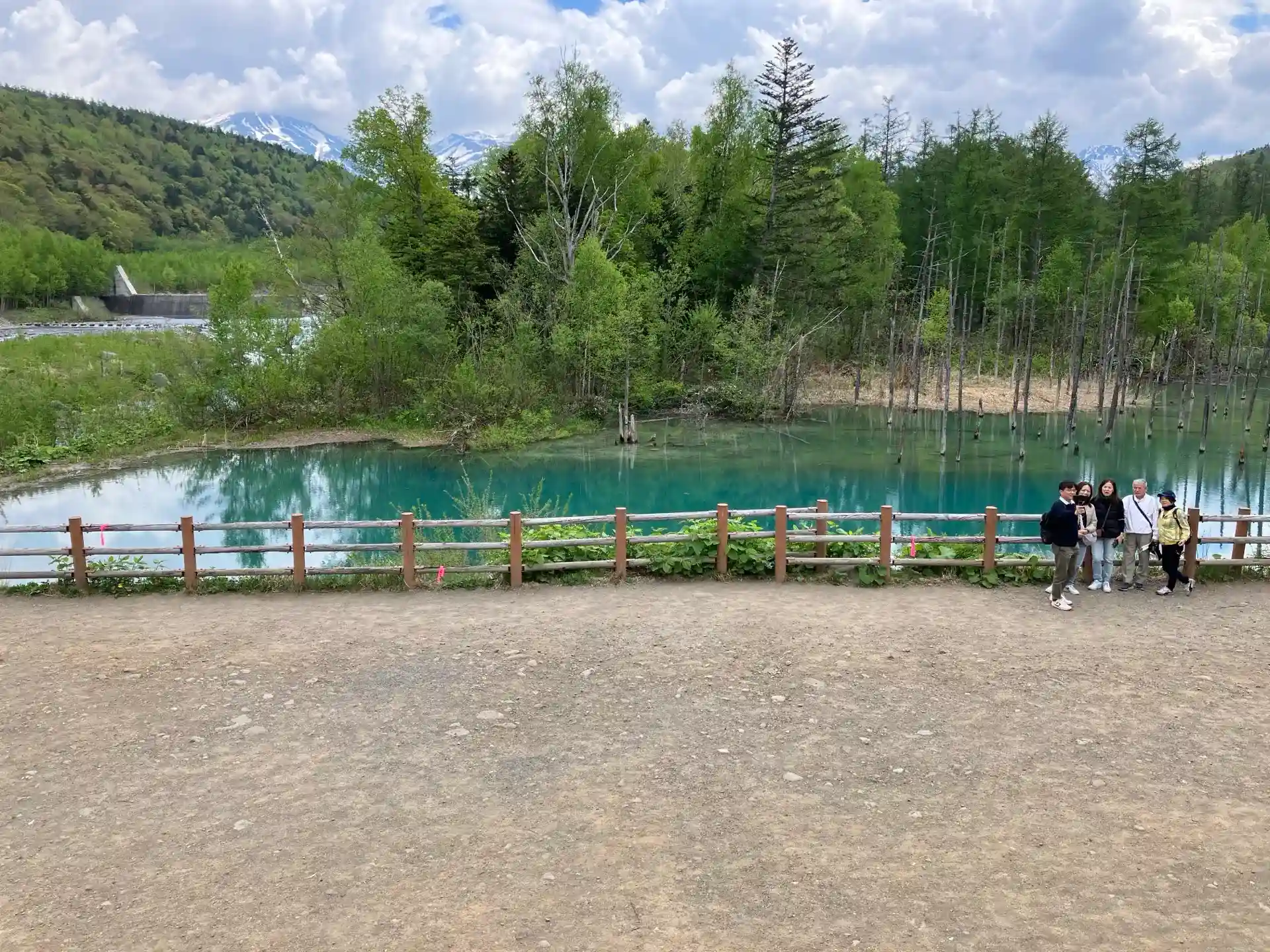 現場に着くとお客様と観光バス、車がたくさんいる場所に呆然としました。道のりは写真に残します・・。池はいつも青いわけでは無い様ですが、大丈夫でした。これも神のご加護でしょうか。