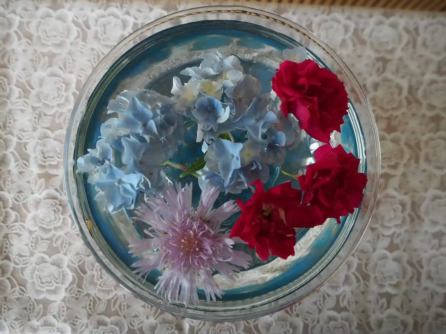 卓上にも小さな<花手水>。