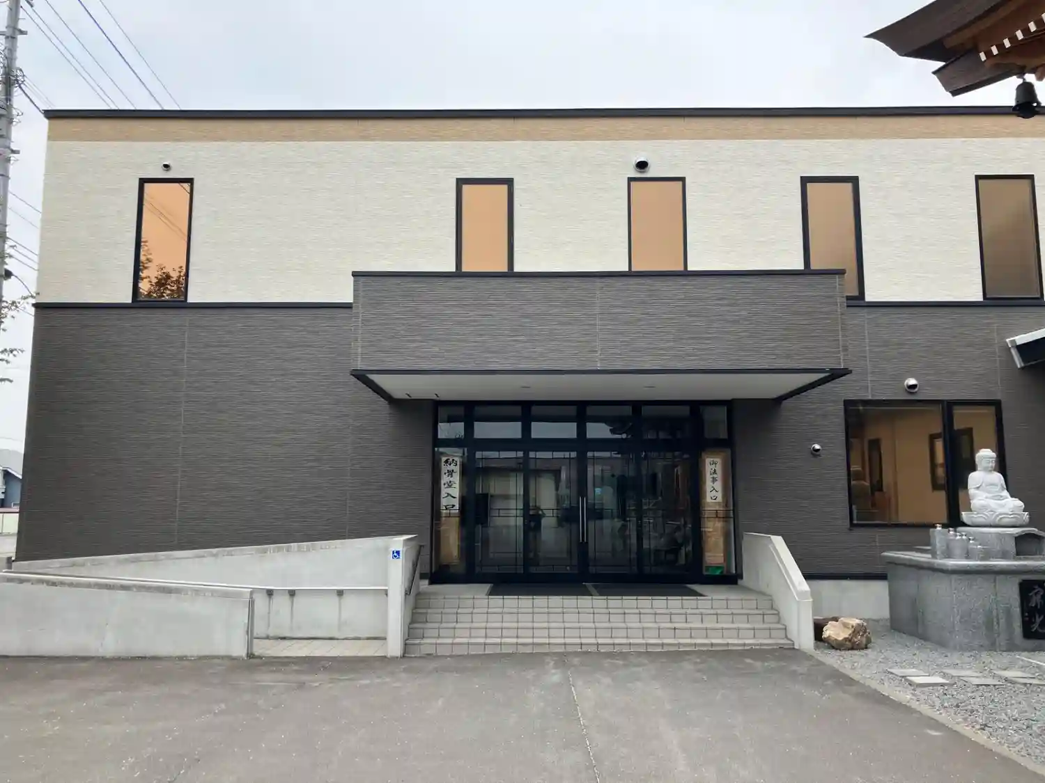 こちらの玄関から入ると右手正面に寺務室、左手に進むと本堂にぬります。