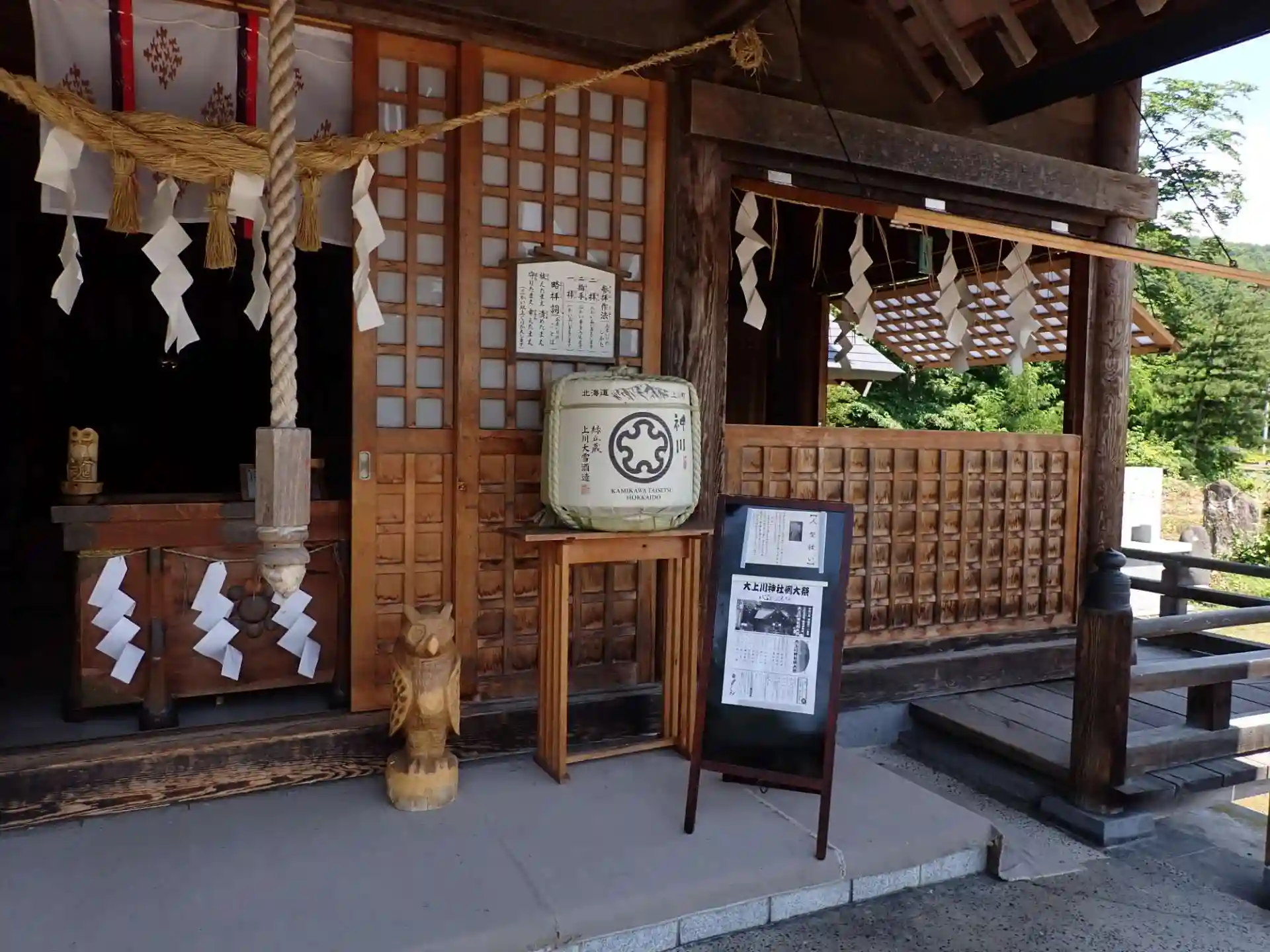 拝殿には「上川大雪酒造」の樽が奉納されていました。