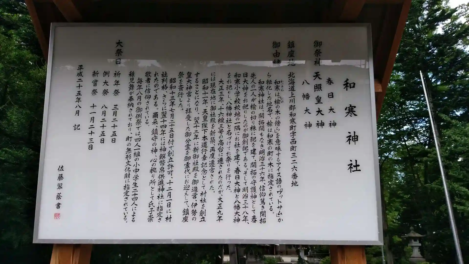 名寄の道の駅で朝を迎え、朱鞠内湖経由で和寒神社。朝の外出から戻られた宮司さんにご朱印を書いていただきました。