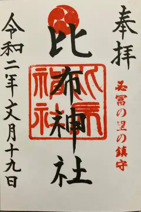 明治三十二年に入植者により石狩川河畔の瀬棚山の小祠が建立され、その後明治三十五年に市街地に小祠を建立し天照皇大神を祀り、比布神社と称したとのことです。