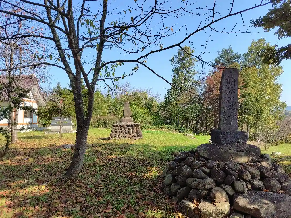 碑文を読むと、明治天皇記念碑、明治神宮碑、越沢馬頭碑、北斗神社創紀年碑、谷口千賀夫歌碑の5つが指定されているようです。