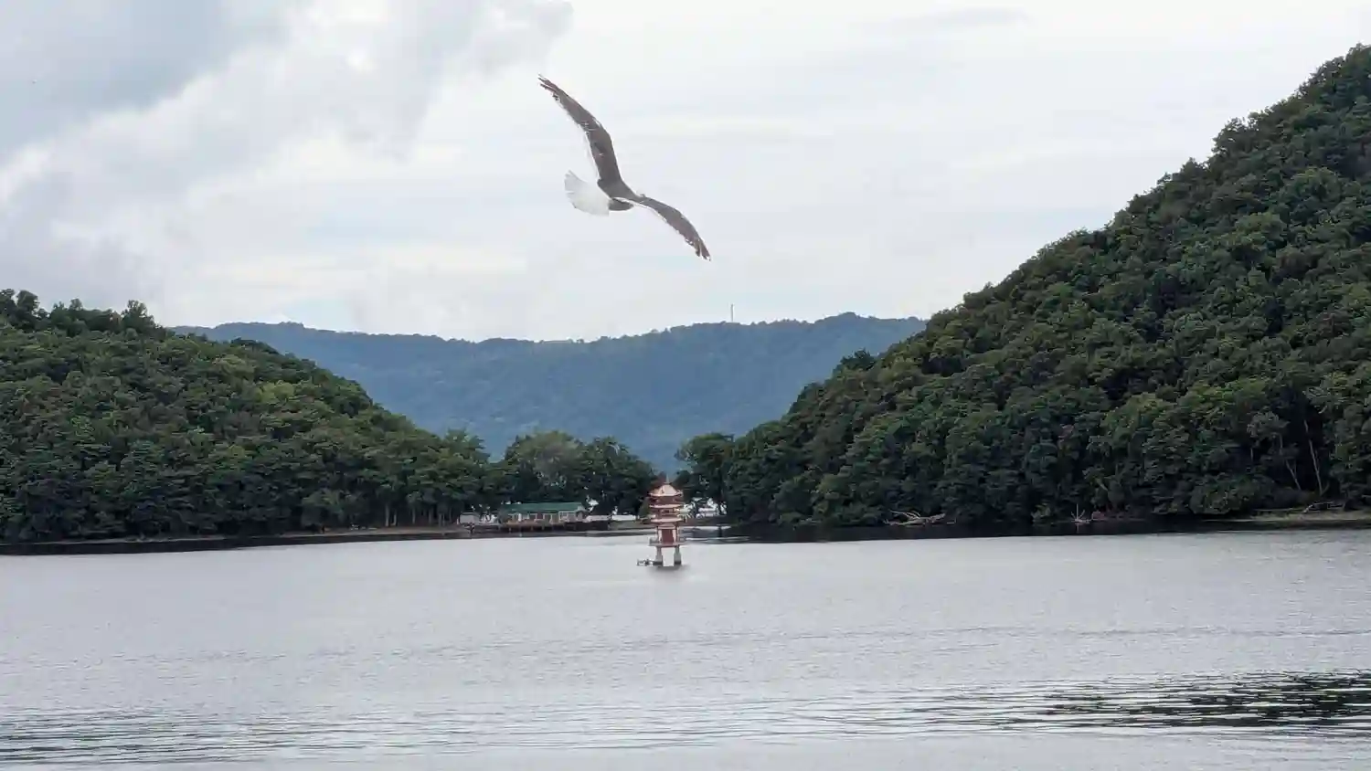 中島行きの遊覧船から見た三重塔