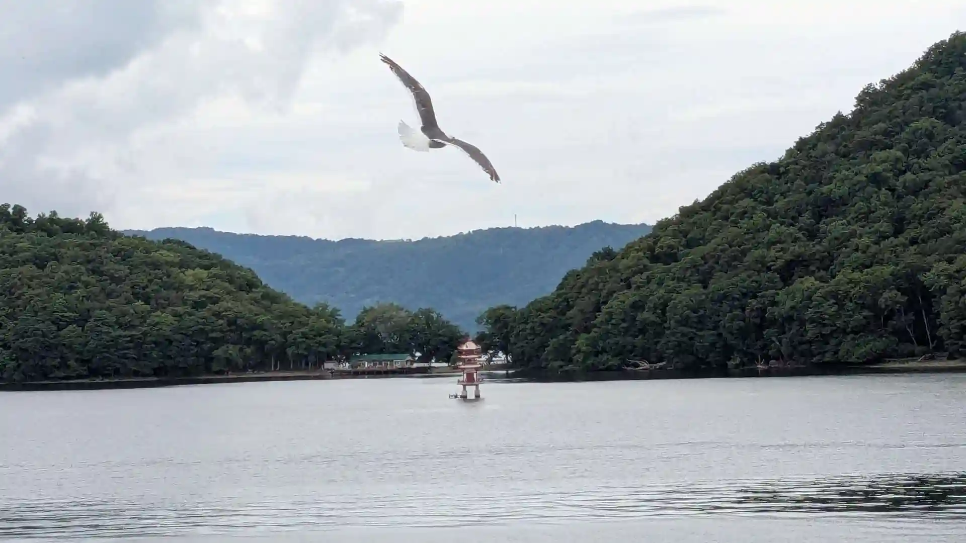 壮瞥町の洞爺湖に浮かぶ三重塔。
