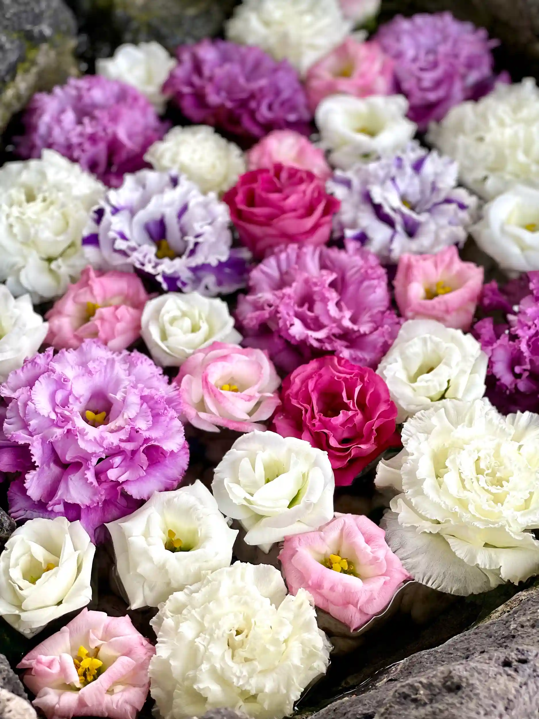 本日は手水舎のお手入れを行い、色鮮やかなトルコキキョウを可愛く生けてみました😌🌸