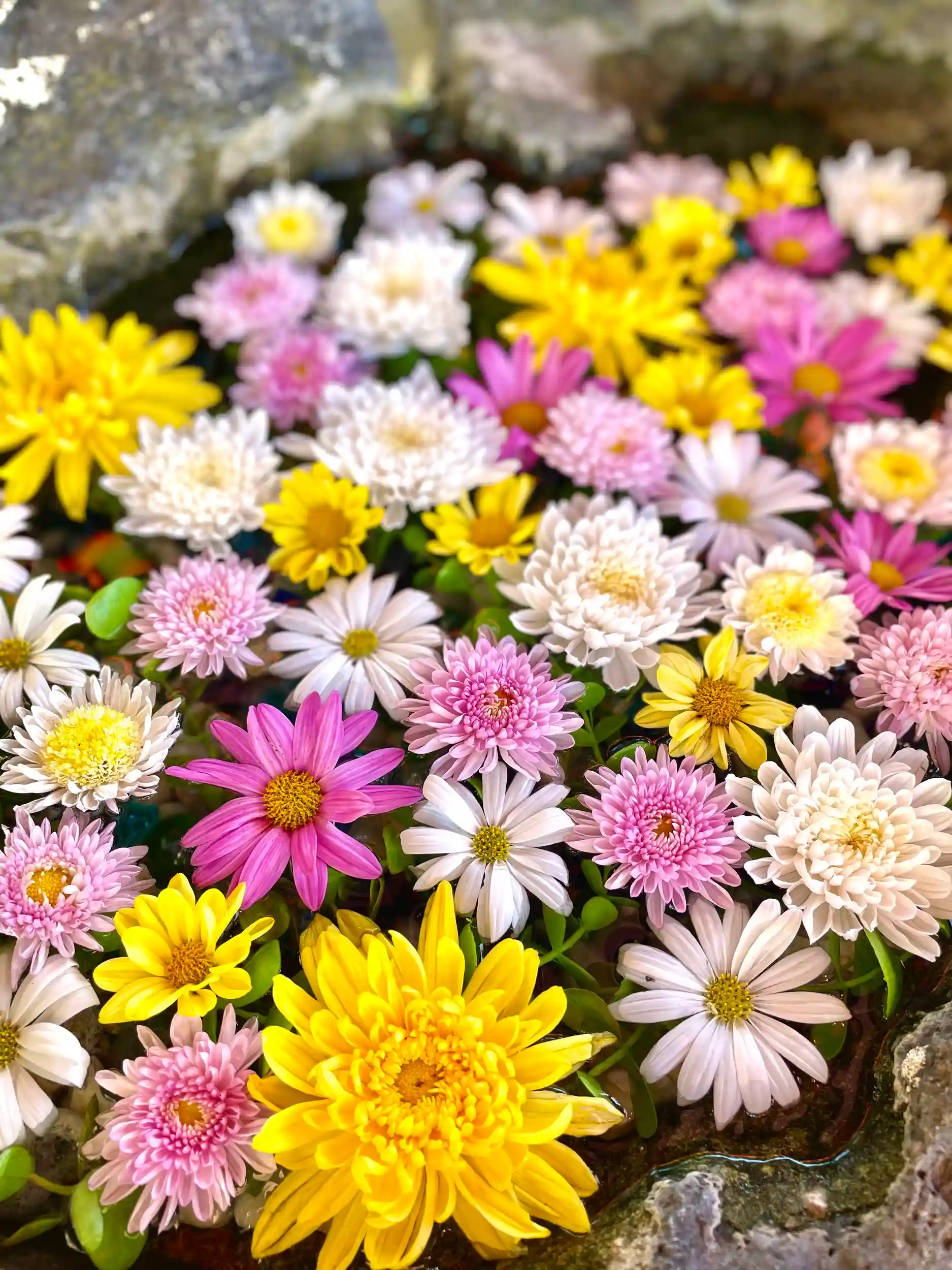 本日、手水舎に色とりどりの菊の花を生けました💐✨