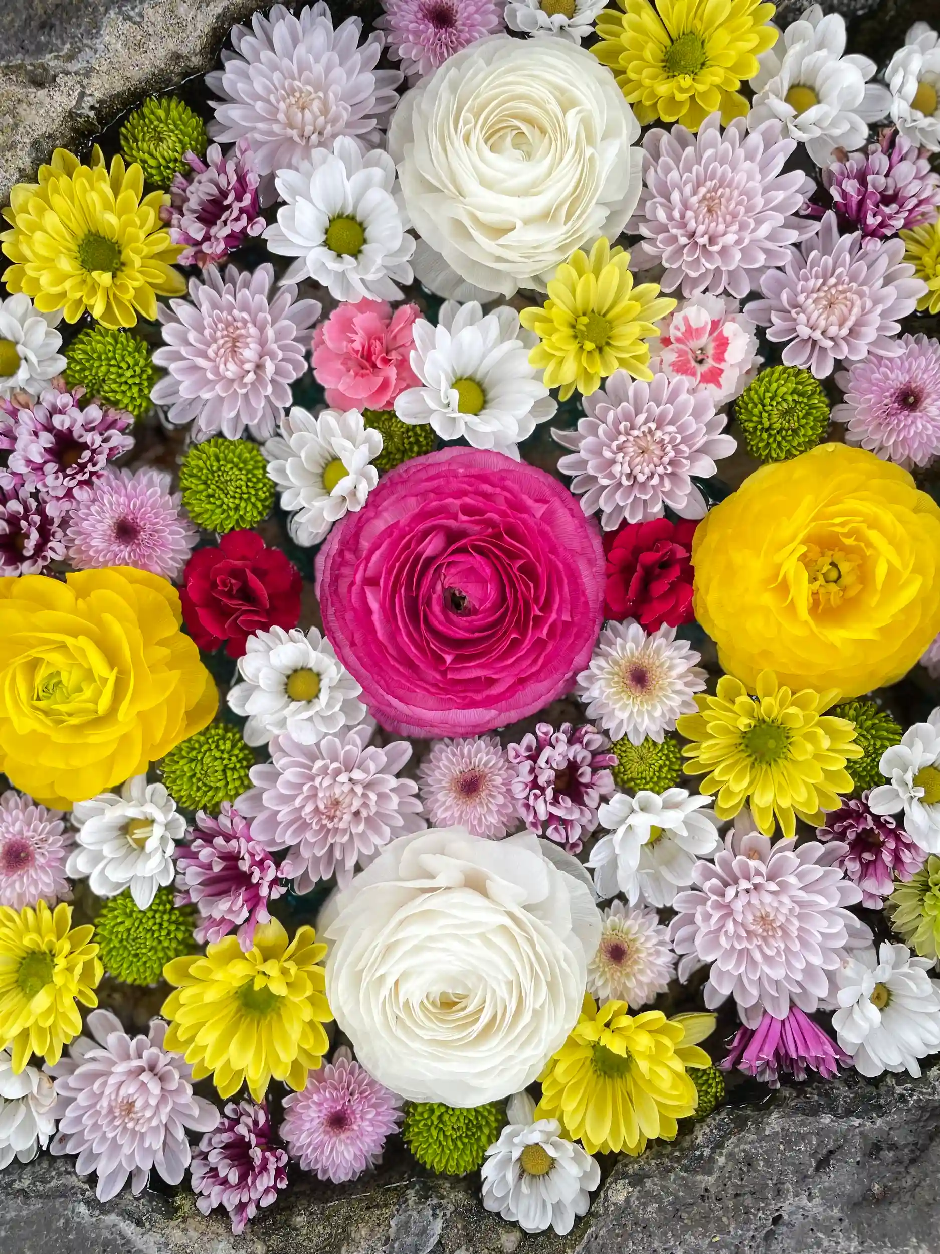 今朝、手水舎にピンクと白のラナンキュラスを追加いたしました💐✨