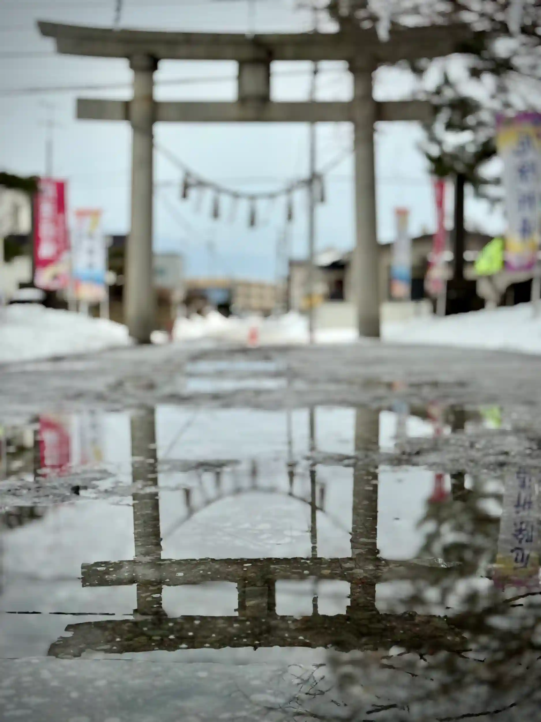 本日は気温が高く、参道は湖のような状態です💦