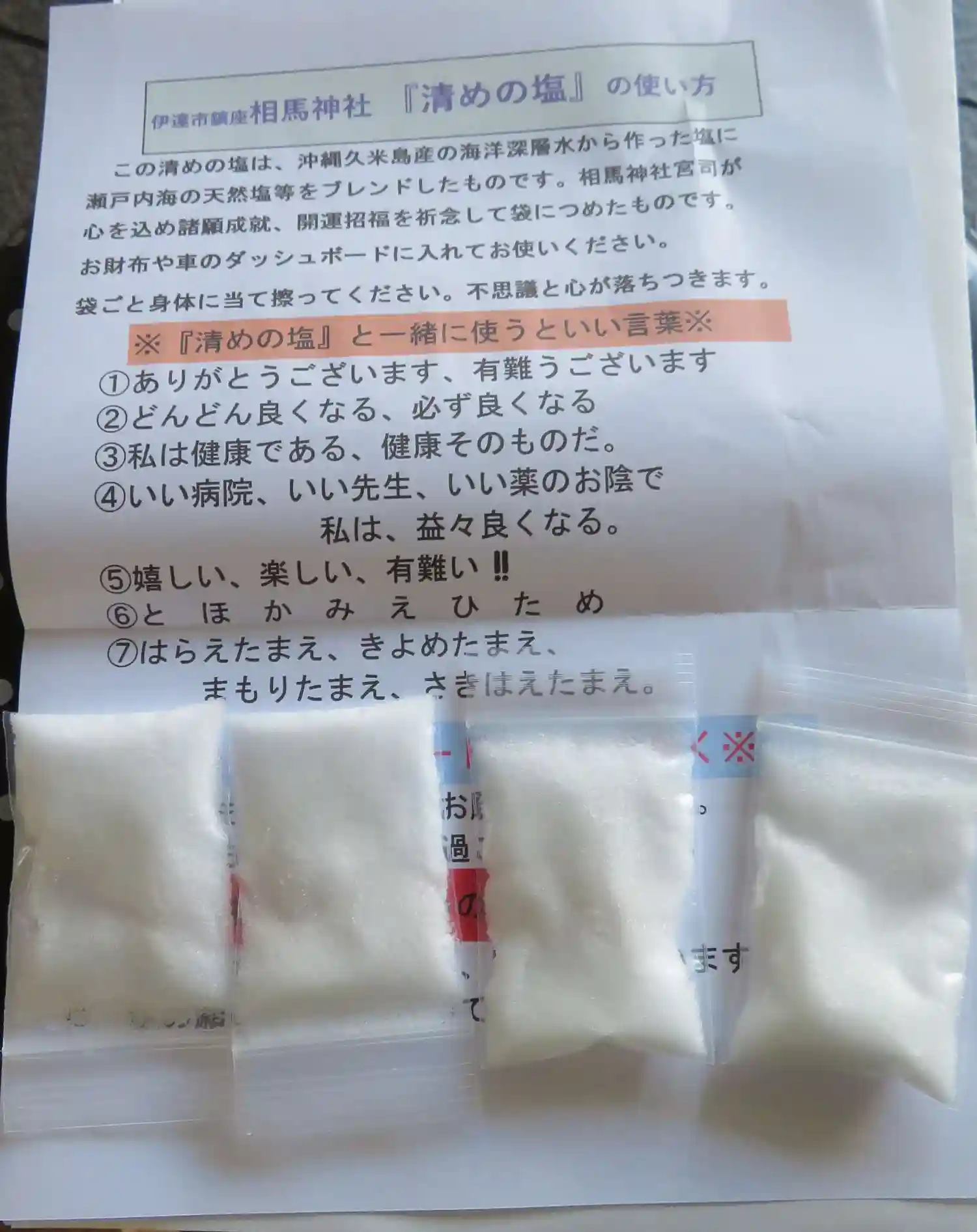 沖縄久米島と瀬戸内海の二種類のお塩をブレンドしている清めの塩🙏
