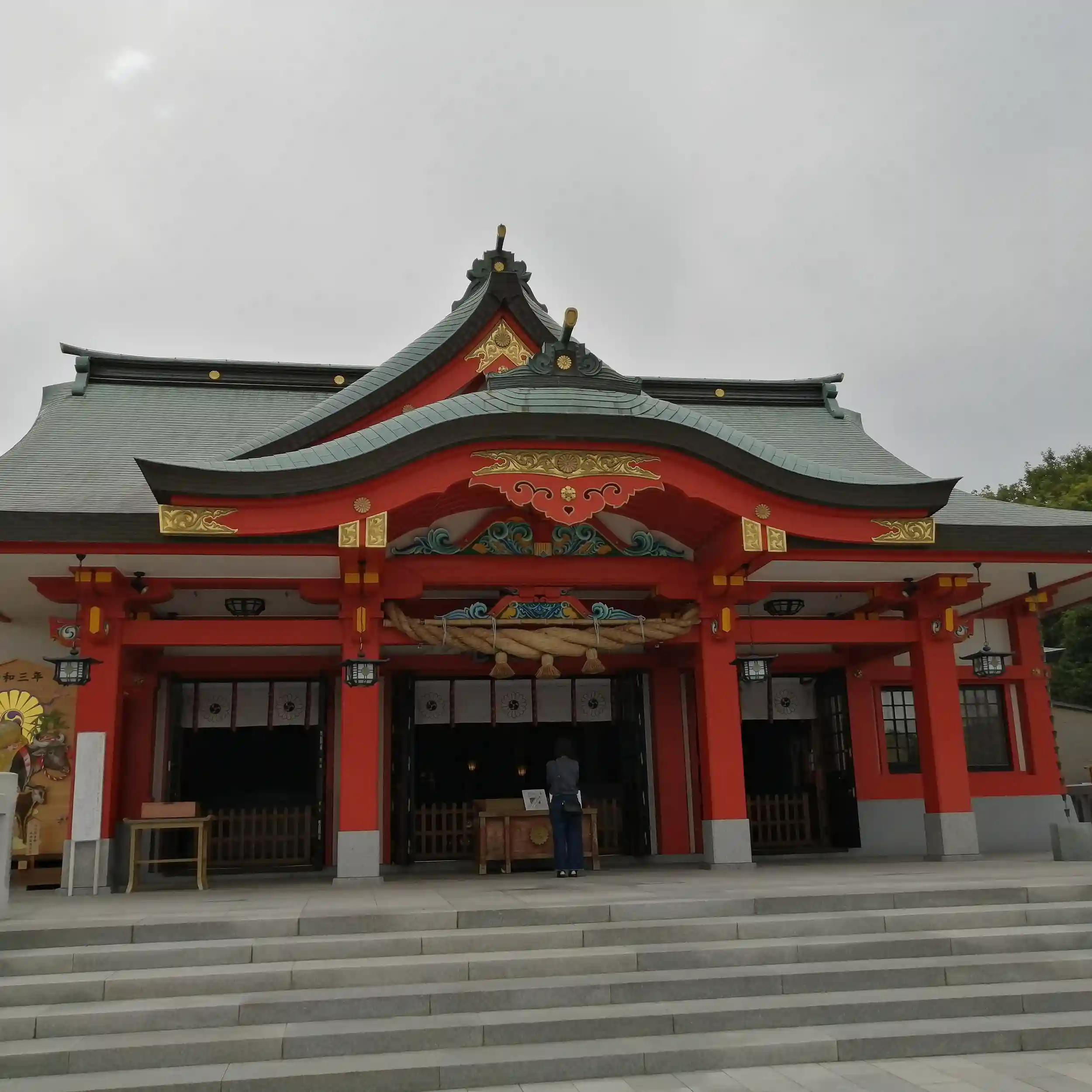 本殿は目を引くとても立派な朱色。