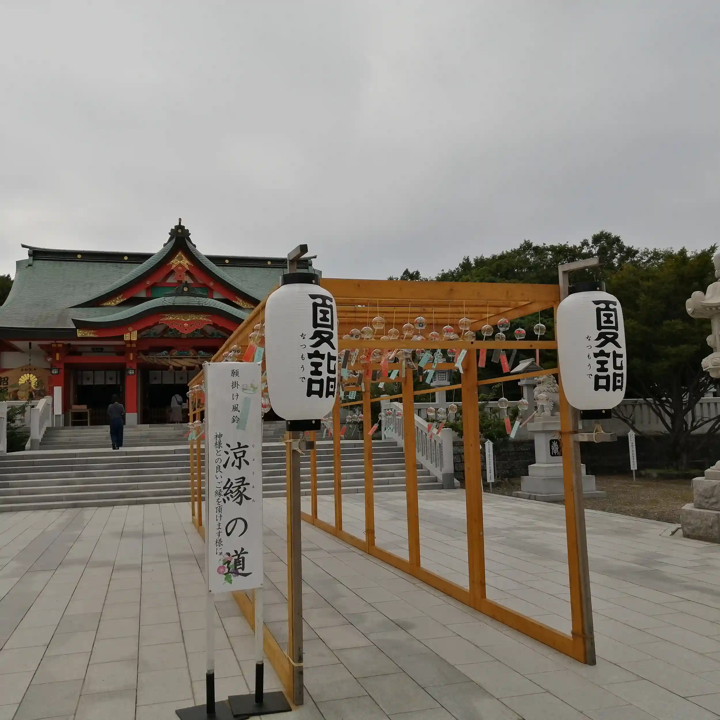 どちらも花手水になっており華やかでした。拝殿へ向かう手前には風鈴のアーチ。風鈴の音色が涼しげで幻想の世界へ足を踏み入れたみたいでした。