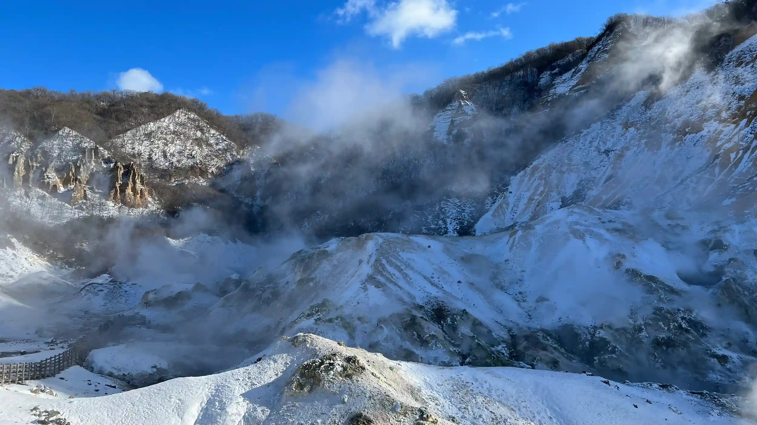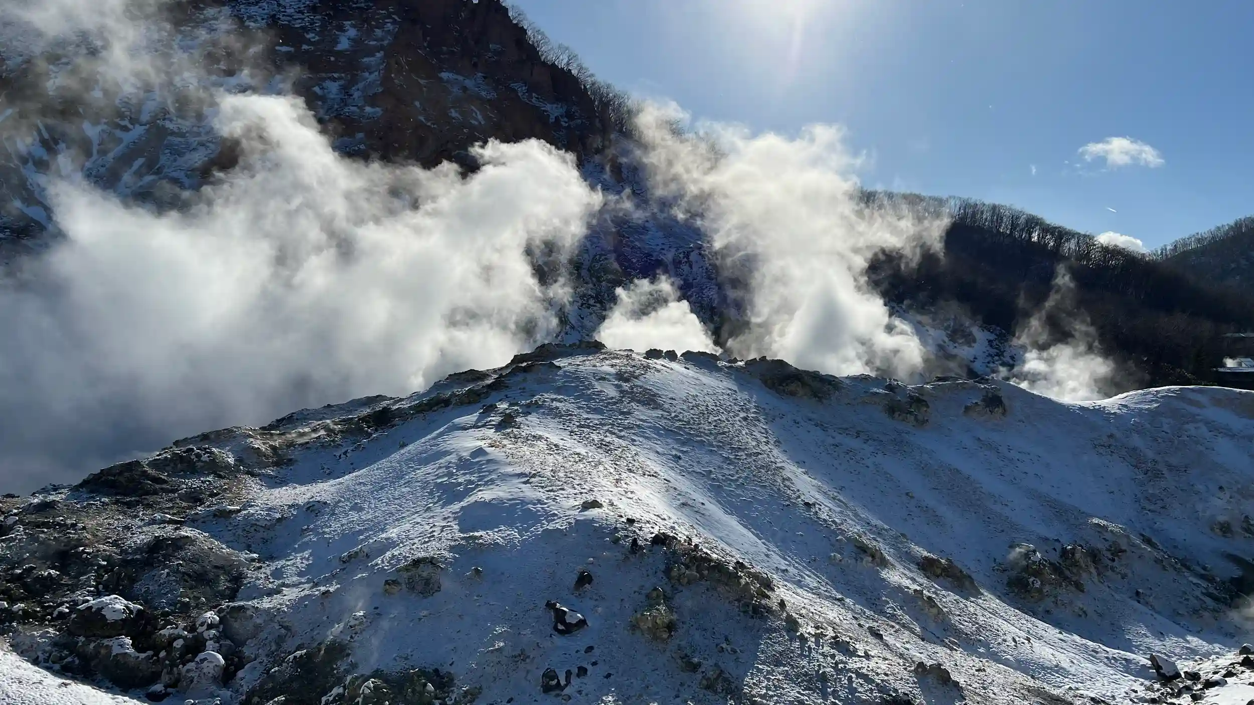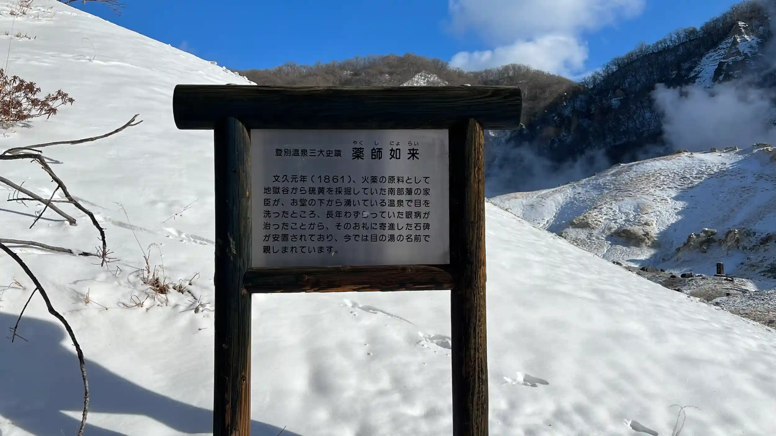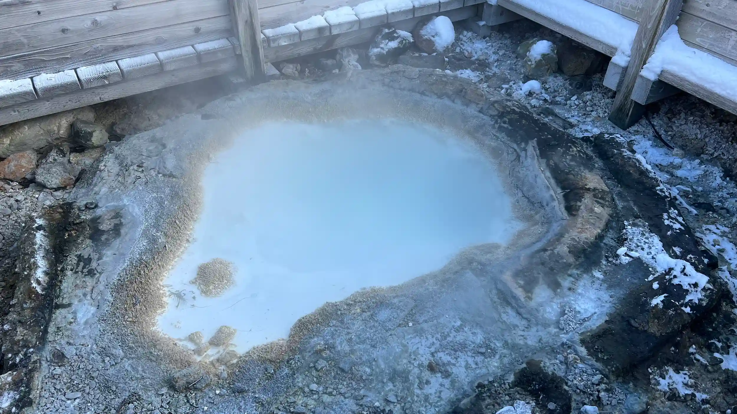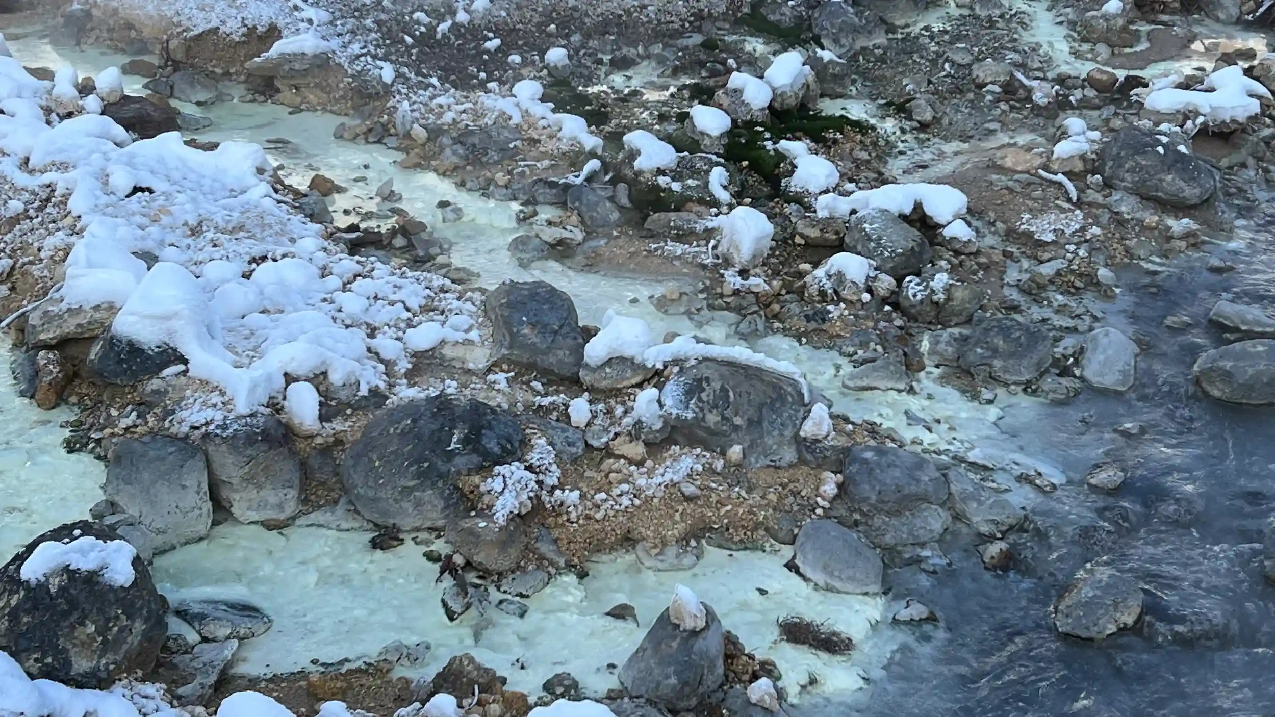 12月の大雪の次の日。温泉の湯がぼこぼこしてて熱そうだけどそれを上回るぐらいすっげええ寒かった。