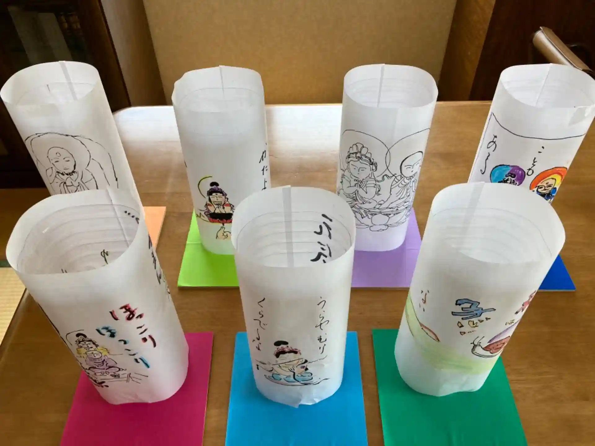 写仏した用紙を、ペットボトルにはり、LEDライトを入れて完成!