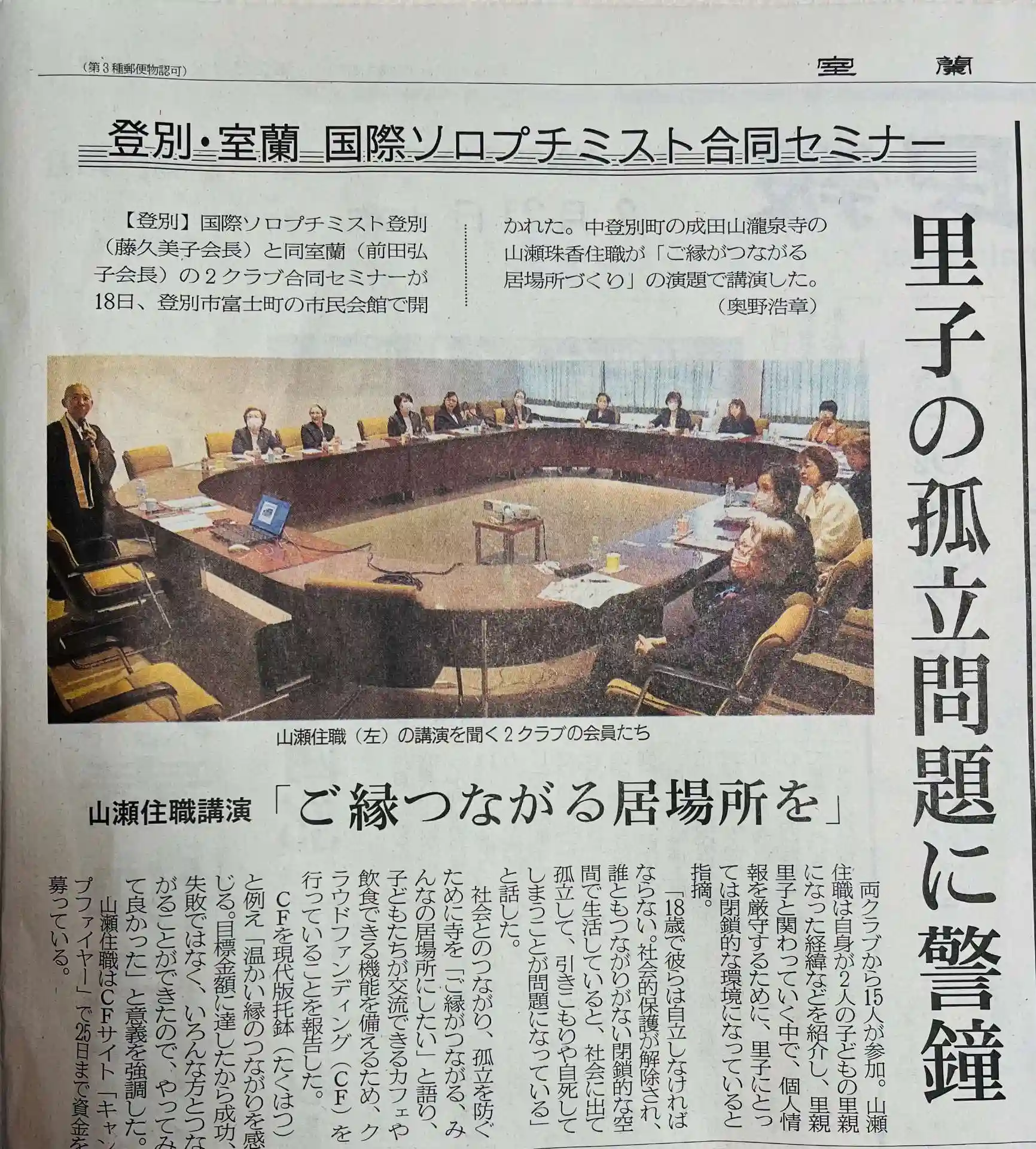 今朝の地元新聞室蘭民報に、先日の室蘭登別ソロプチミスト合同セミナーの記事が掲載されました。