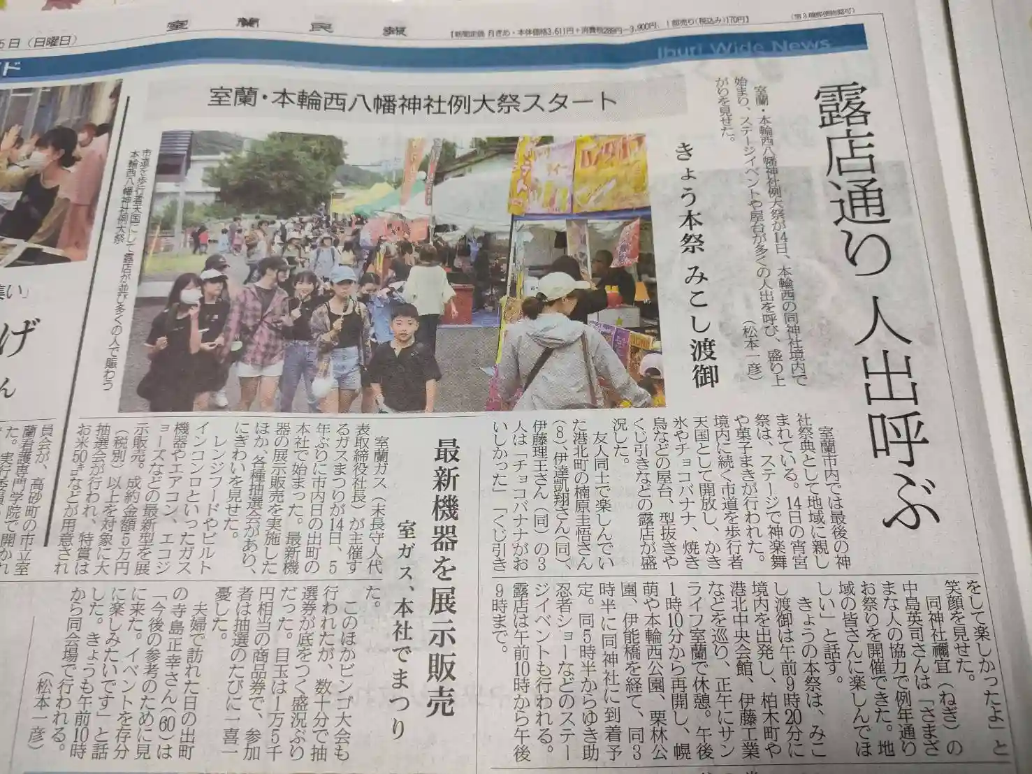 室蘭民報社様より例大祭の掲載 ありがとうございます