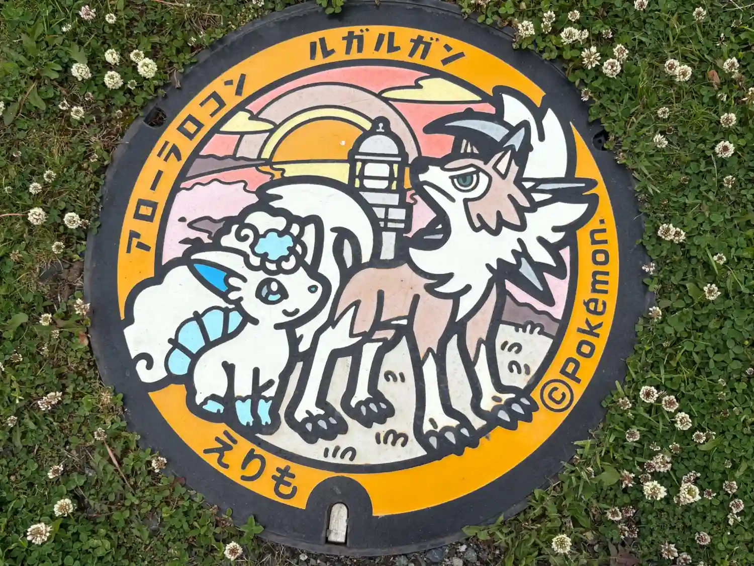 住吉神社(えりも町)〜灯台公園にある幌泉灯台記念塔前にポケモンマンホール