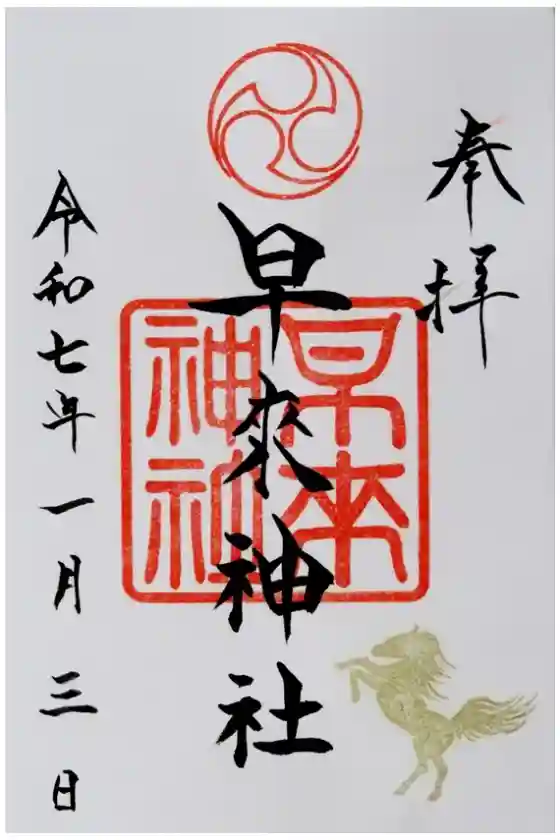 直書きの御朱印には躍動感ある金馬の姿!
