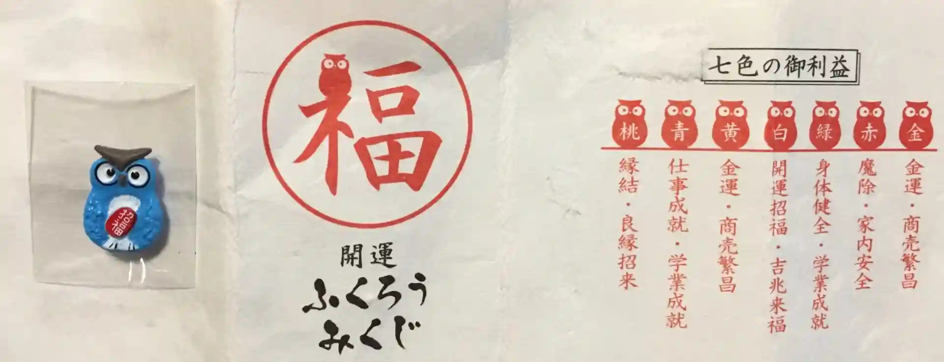 フクロウの御神籤は仕事成就の青いフクロウがでました。