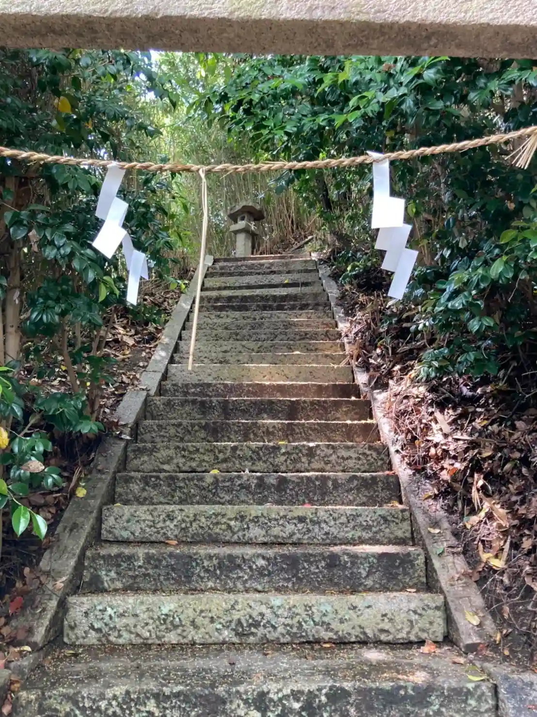 神社の後ろは緑豊かな小山となっていて、拝殿向かって左側にイノシシ🐗注意!の貼り紙。奥を見ると鳥居があり、この鳥居の向こうの石段を上がって小山へ。新しくできた道路から見えていたのはこちらだったのですね。
